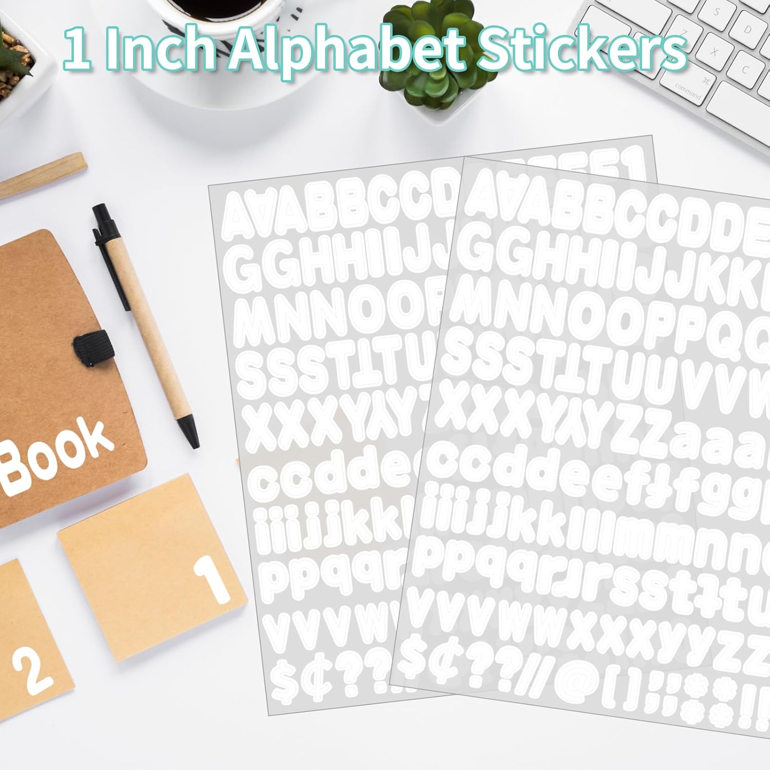 Alphabet Stickers - 1''Inch 12 Sheets White Self Adhesive Vinyl Letter Stickers for Mailbox Numbers, Bulletin Boards, Classroom & Home Decor