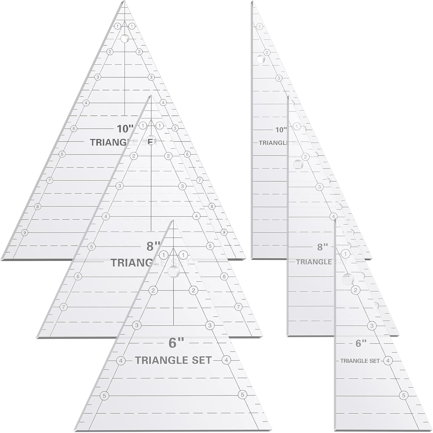 - Package Includes: 3 sets of tall triangle quilting templates in 10, 8, and 6 inches sizes ( Please note that the vertex angle of an isosceles triangle is 50 degrees) ; Made from 0.118" / 3mm thick acrylic, these templates are smooth, reducing the likelihood of breakage or deformation; This set of wing and wedge patchwork templates will take the guesswork out of your next patchwork project; Each patchwork template for cutting patterns provides a simple guide for your next design