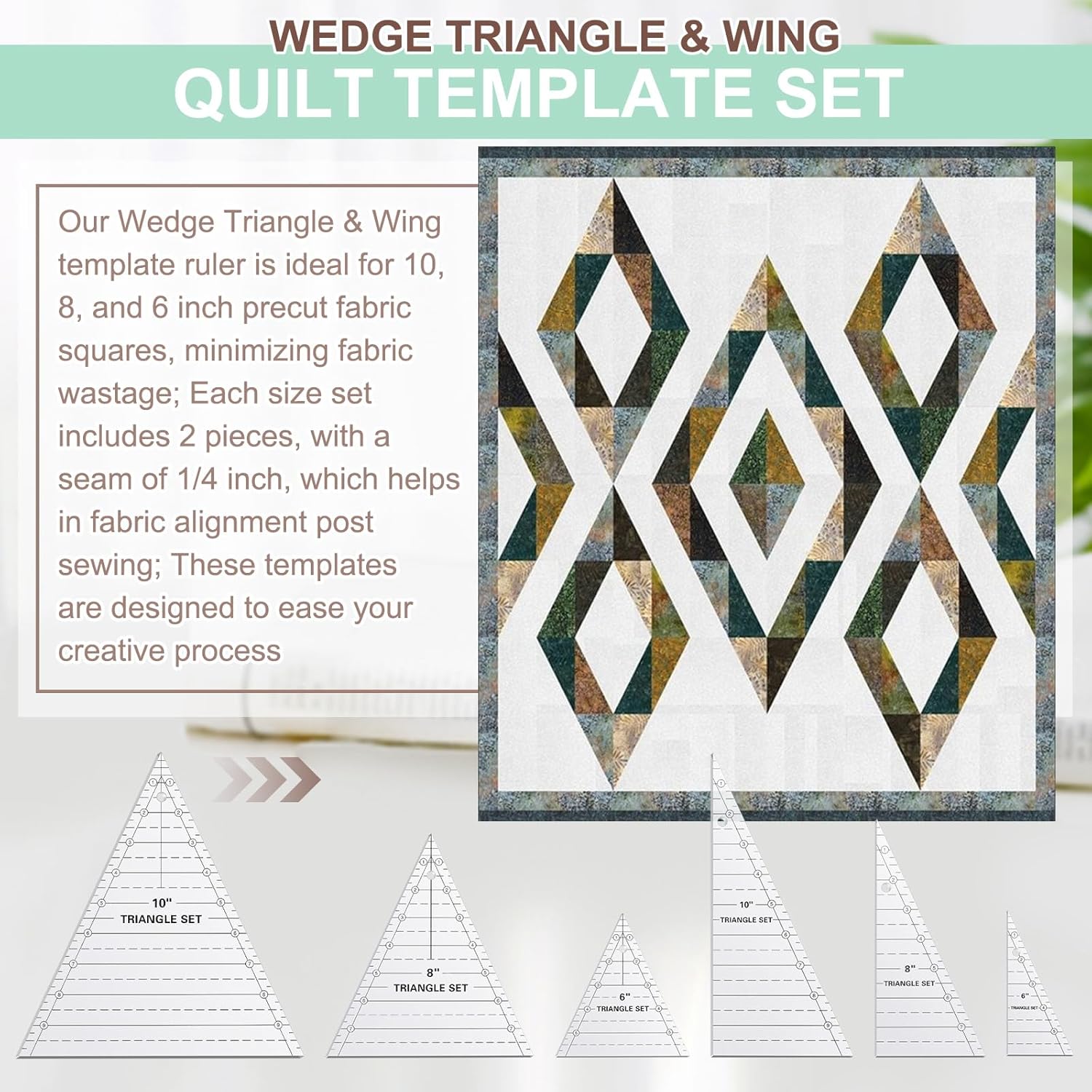 - Multiple Size: this wing and wedge template ruler is suitable for 10, 8 and 6 inch squares to minimize fabric waste; Each set of sizes contains 2 pieces with 1/4 inch seam allowance; Please refer to the pictures for specific dimensions; They are your ideal partners for efficiently designing and cutting fabric squares