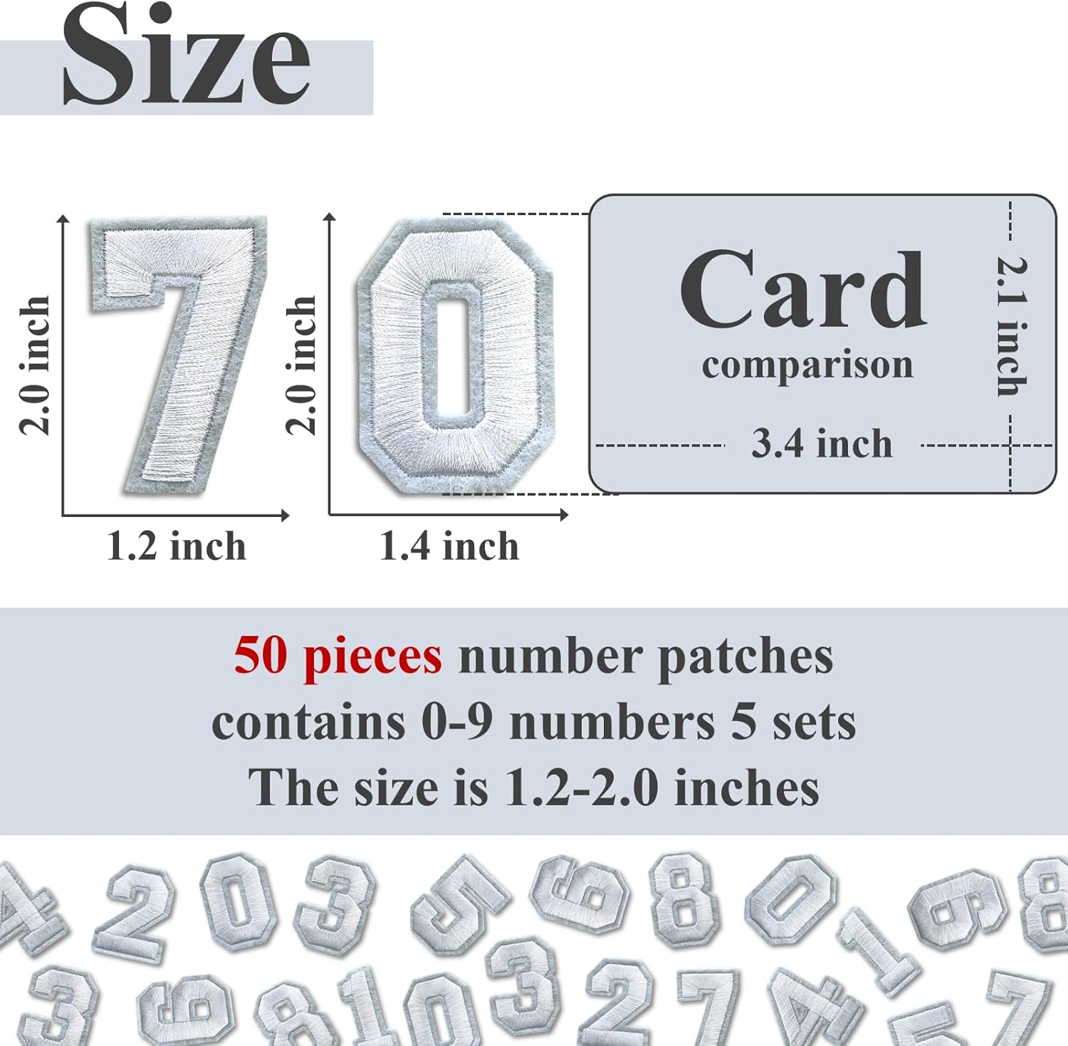 - PRODUCT: 50 pieces number patches, contains 0-9 numbers 5 sets.
