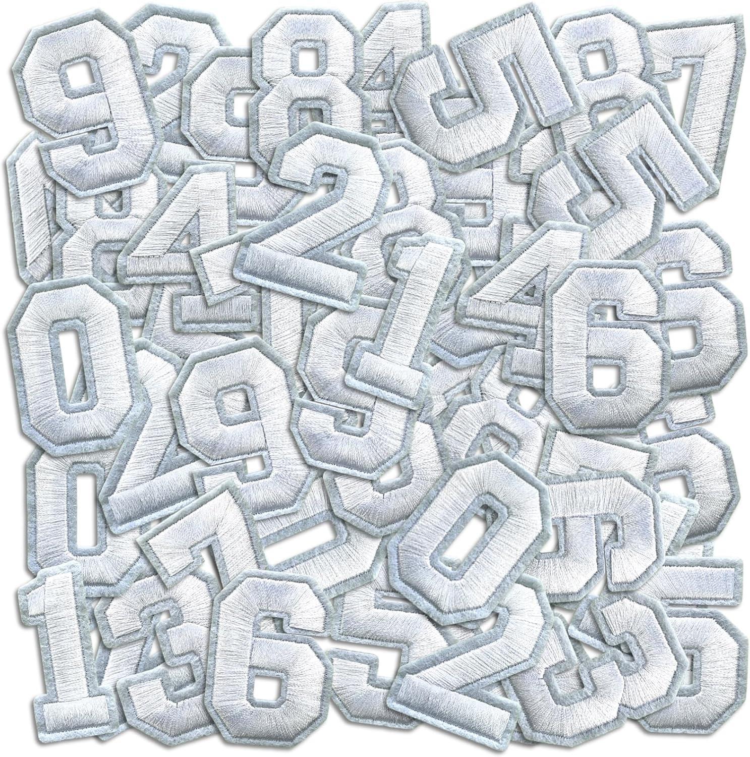 Number Iron On Patches, Numbers 0-9 Embroidery Applique Patch, DIY Decorative Heat Press Patches for Clothing Jeans Jackets Backpacks Hats (White 50 Pcs)