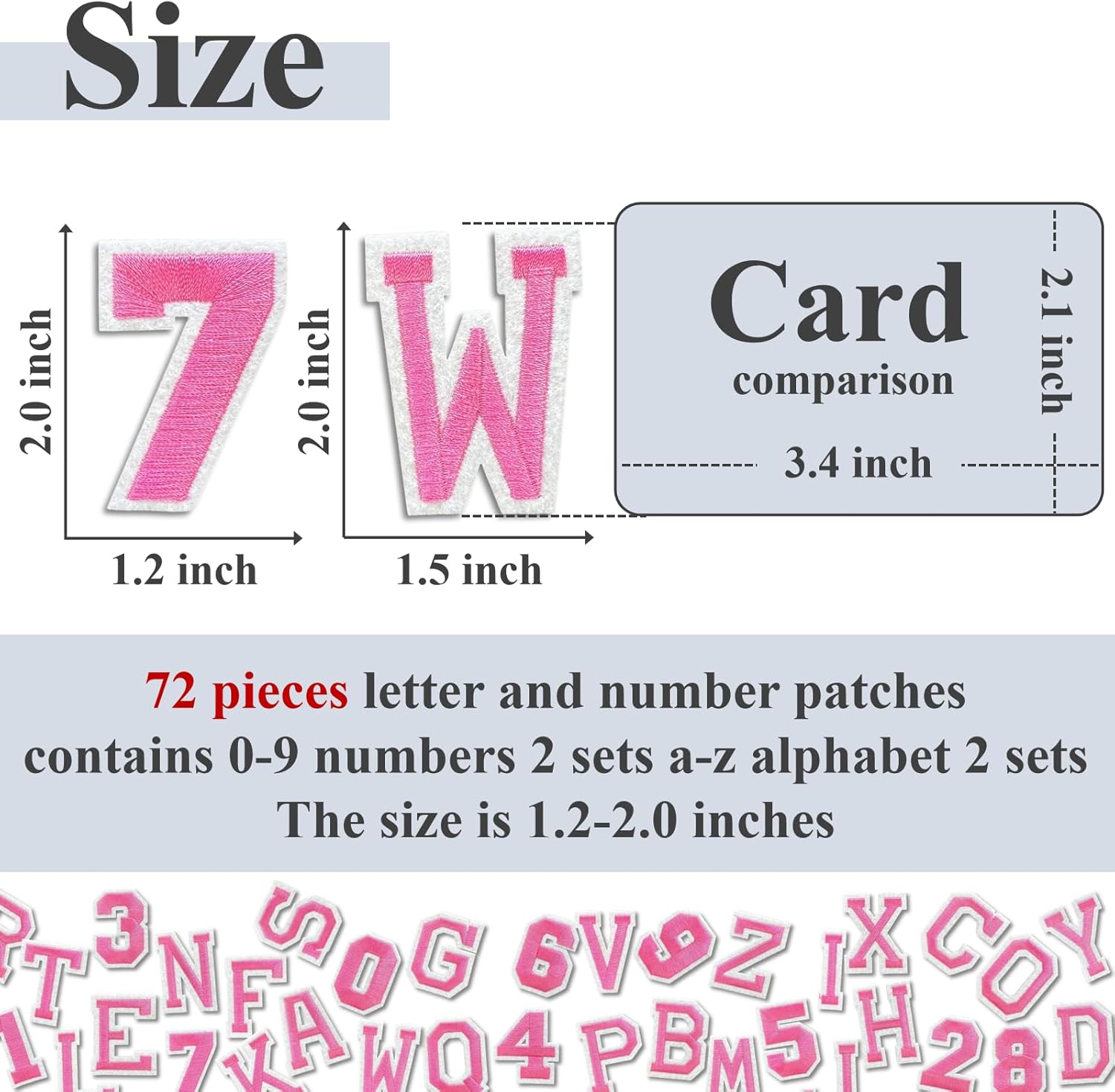 - PRODUCT: 72 pieces letter and number patches, contains a-z alphabet 2 sets, 0-9 numbers 2 sets.