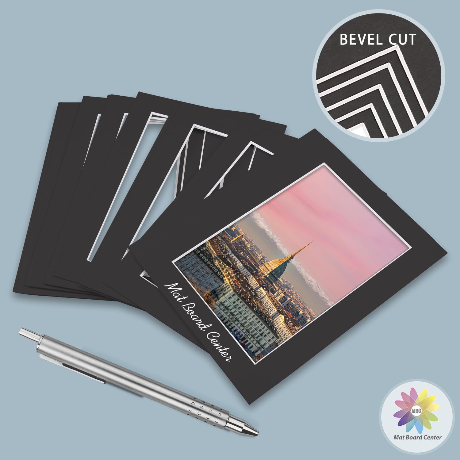 MBC Mat Board Center, 10 Pack 12x16 for 9x12 Black Picture Mats Frame Mattes, Bevel Cut, Acid Free, 4-ply Thickness