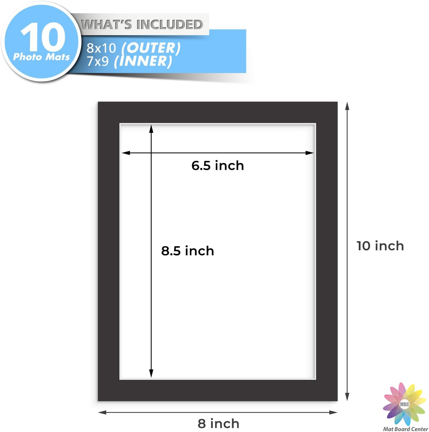 MBC MAT BOARD CENTER, 10 Pack 8x10 for 7x9 Black Picture Mats Frame Mattes, Bevel Cut, Acid Free, 4-ply Thickness