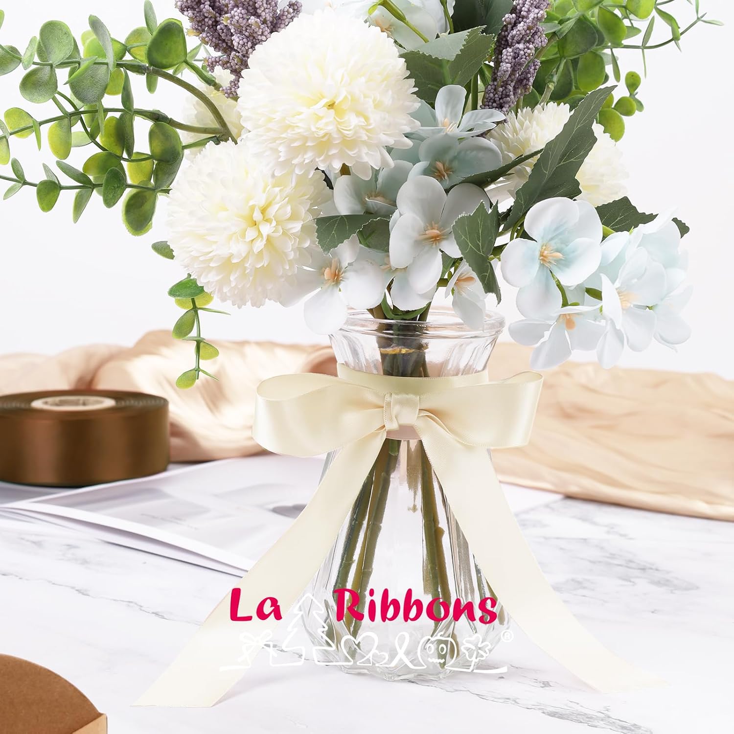 LaRibbons 1 Inch 50 Yard Double Faced Satin Ribbon,Nude Beige Satin Craft Fabric Ribbon for Gift Wrapping Floral Bouquets Wedding Party Decoration