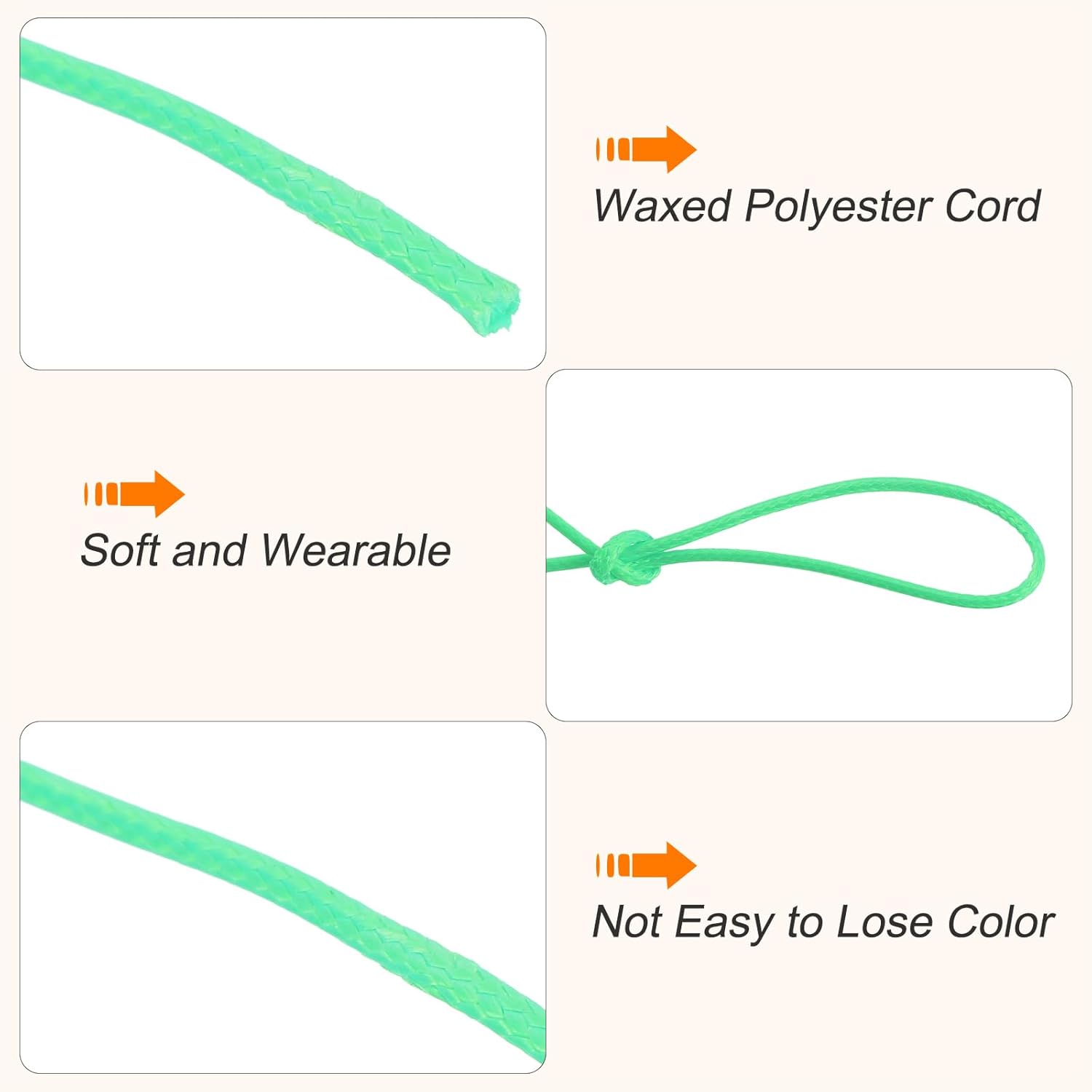MECCANIXITY Waxed Cord 1mm Waxed Polyester Cord 175 Yard Wax String for Bracelet Making,Necklaces, Beading,Jewelry Making and DIY Crafts(Light Green)