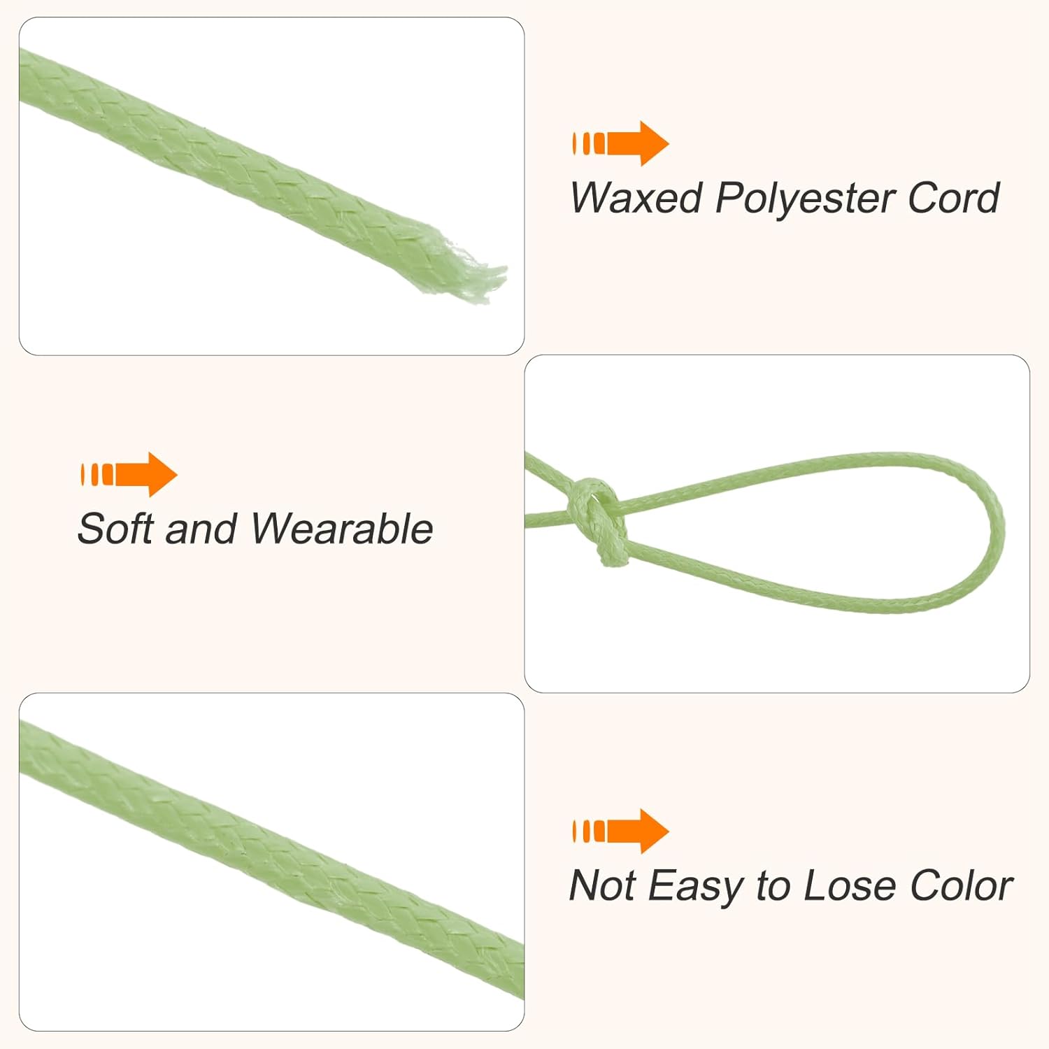 MECCANIXITY Waxed Cord 1.5mm Waxed Polyester Cord 175 Yard Wax String for Bracelet Making,Necklaces, Beading,Jewelry Making and DIY Crafts(Grass Green)