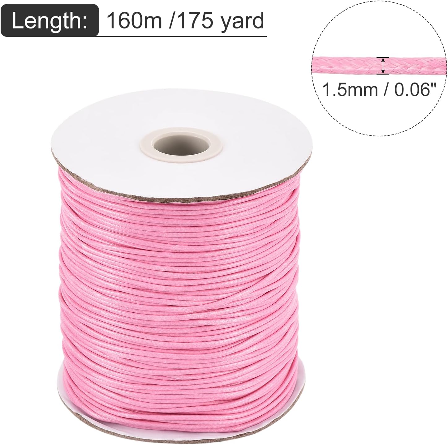 MECCANIXITY Waxed Cord 1.5mm Waxed Polyester Cord 175 Yard Wax String for Bracelet Making,Necklaces, Beading,Jewelry Making and DIY Crafts(Pink)