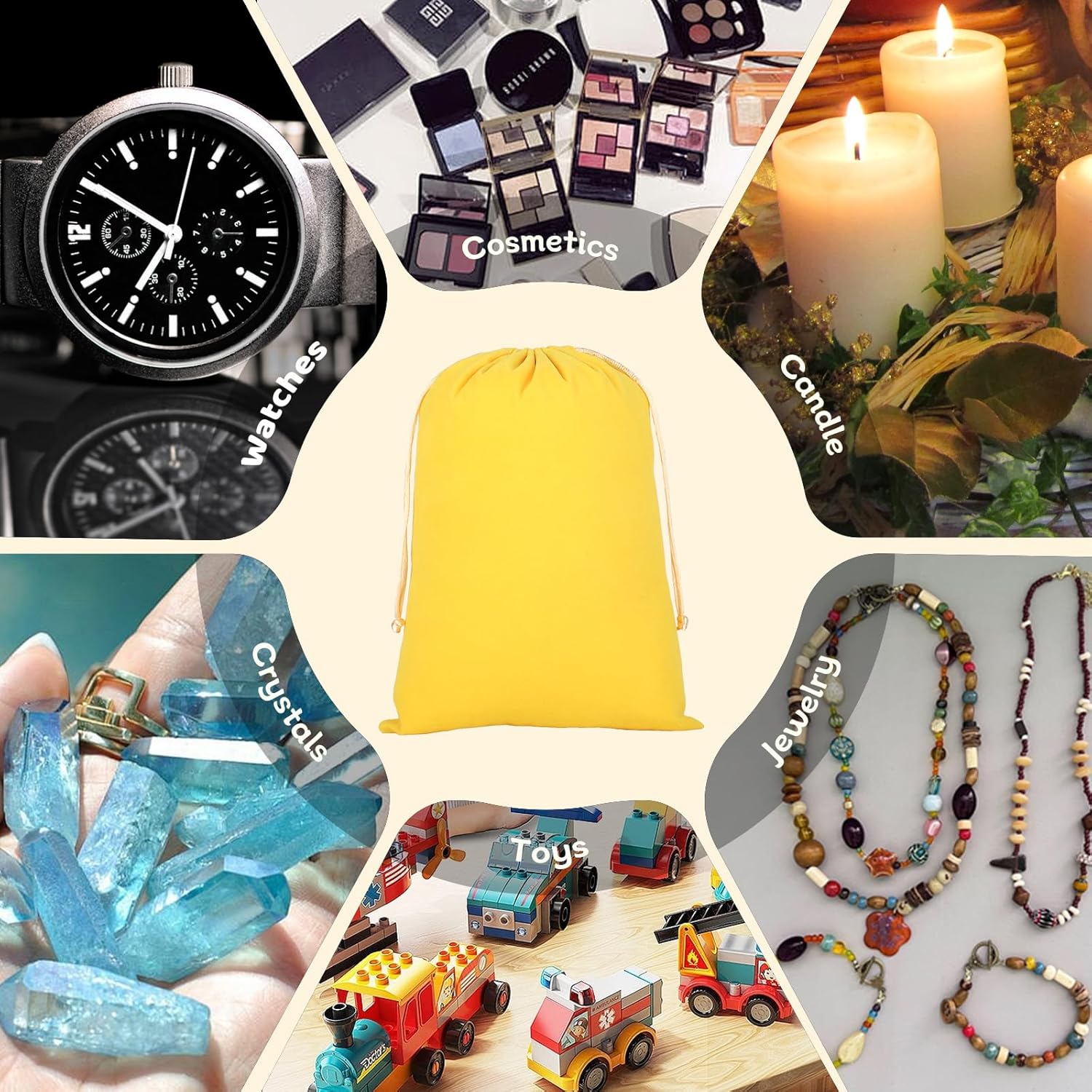 - Perfect for Bulkier Items: With a spacious size, these bags are ideal for storing larger gifts like candles, beauty products, tech gadgets, or collections of crystals and jewelry.