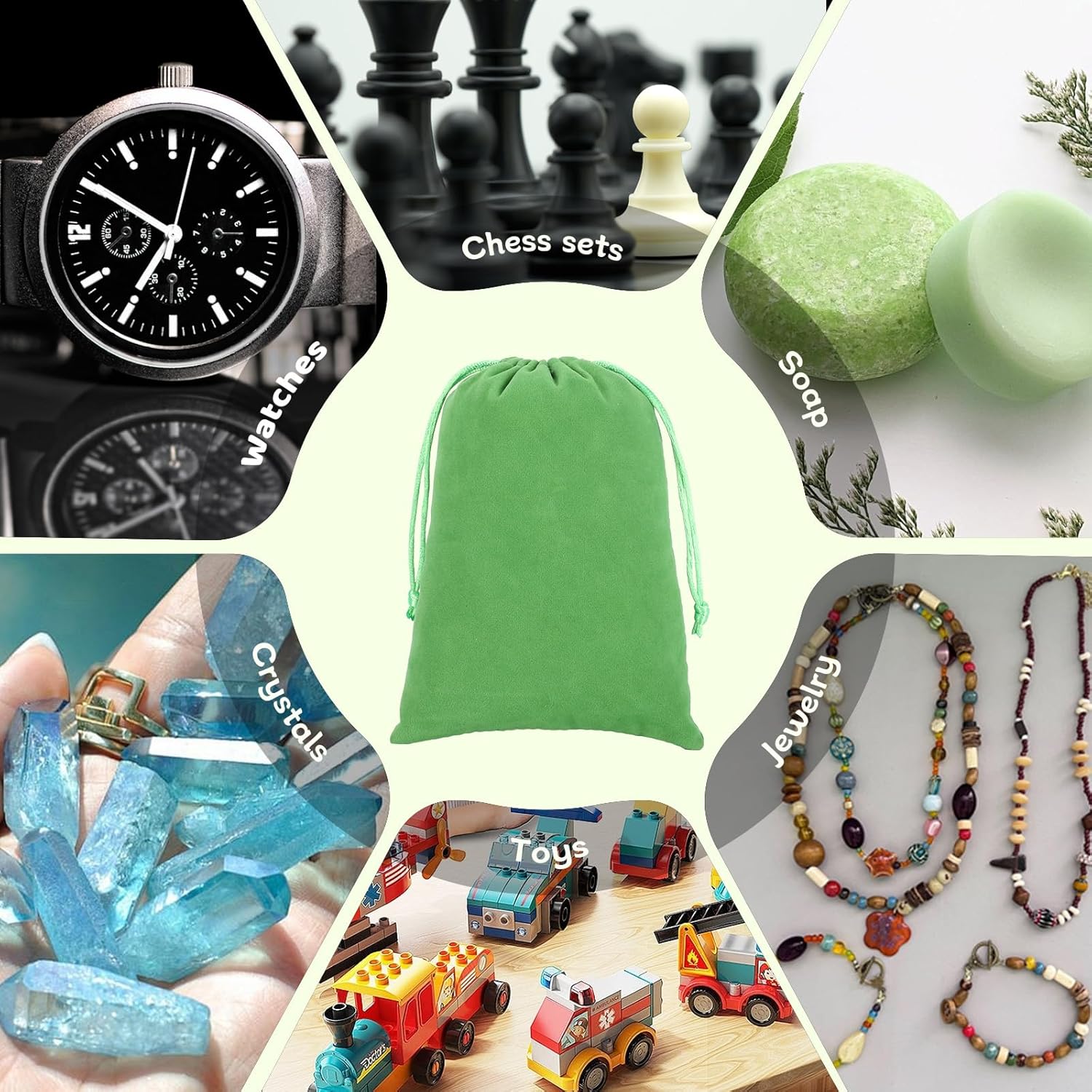 Velvet Drawstring Jewelry Bag, 50Pcs Green Dice Bag, 5x7, Or Wrapping Halloween Party Favors, Mojo, Small Bussiness, Jewelry, Bracelet, Customers