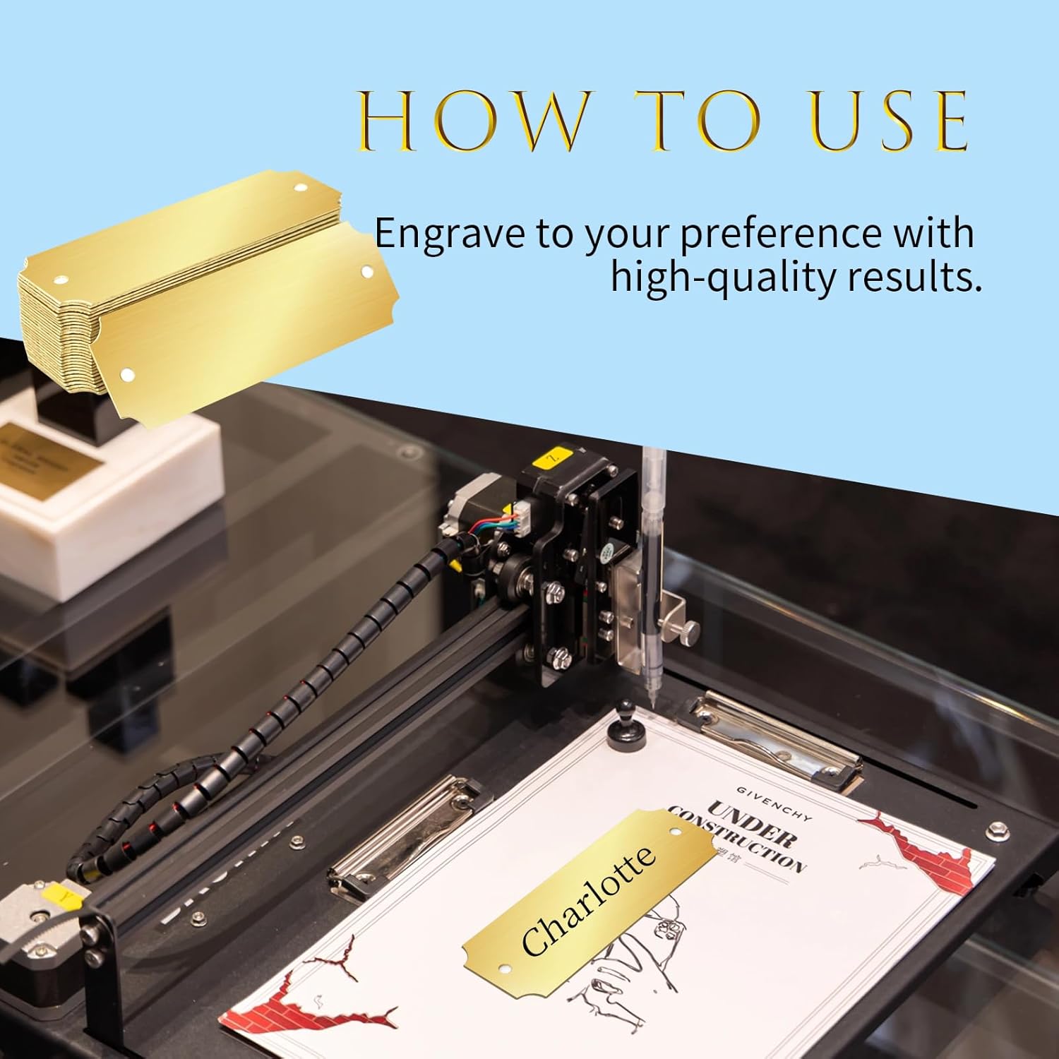 - Versatile and Ample Quantity: The set includes 40 gold metal engraving plates and 100 screws, providing more than enough for your needs. Ideal for DIY nameplate engraving projects, these plates allow you to create personalized gifts. Note: Suitable for laser engraving only, not for mechanical engraving.