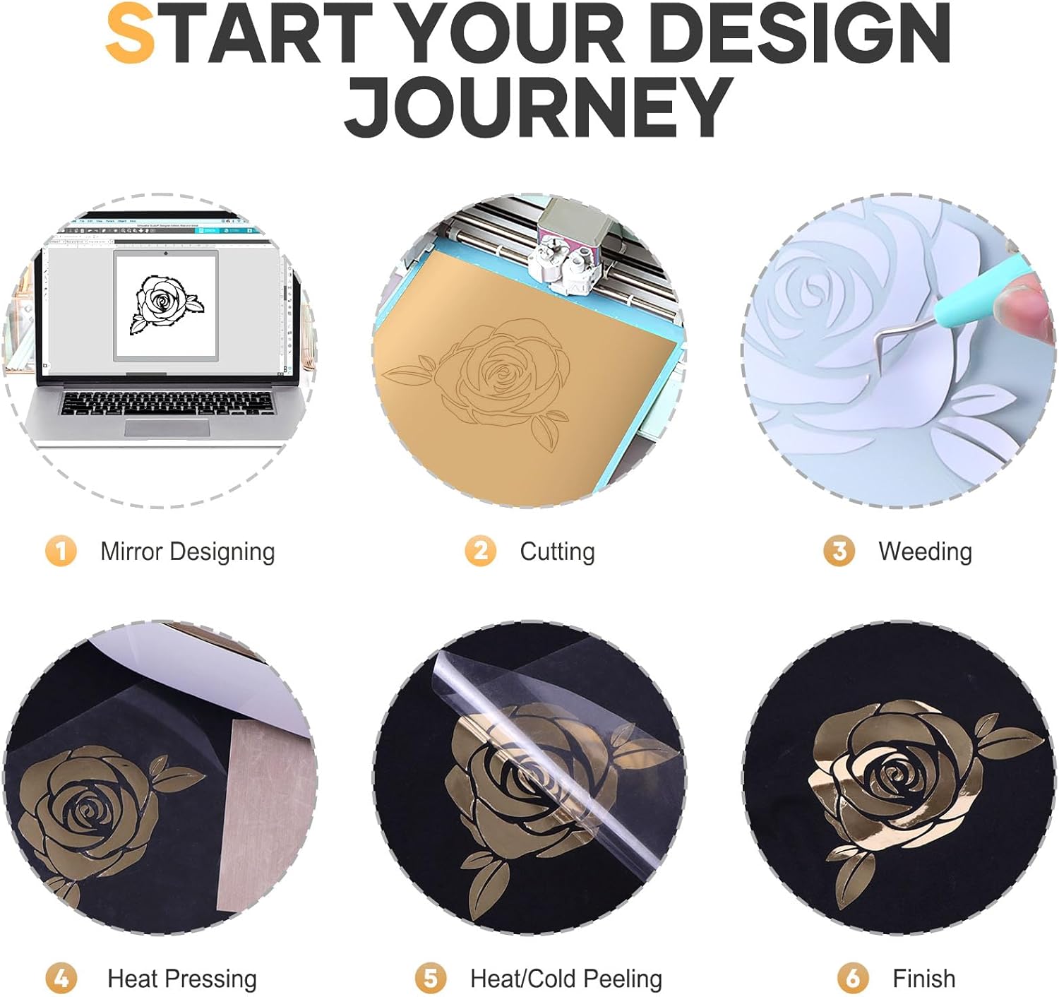 - 【 Metallic Luster 】Our htvront heat transfer vinyl has a unique metal finish and elasticity to make your designs vivid; And you don't have to worry about the pattern breaking or falling off, because this iron on vinyl has great tear resistance and durability