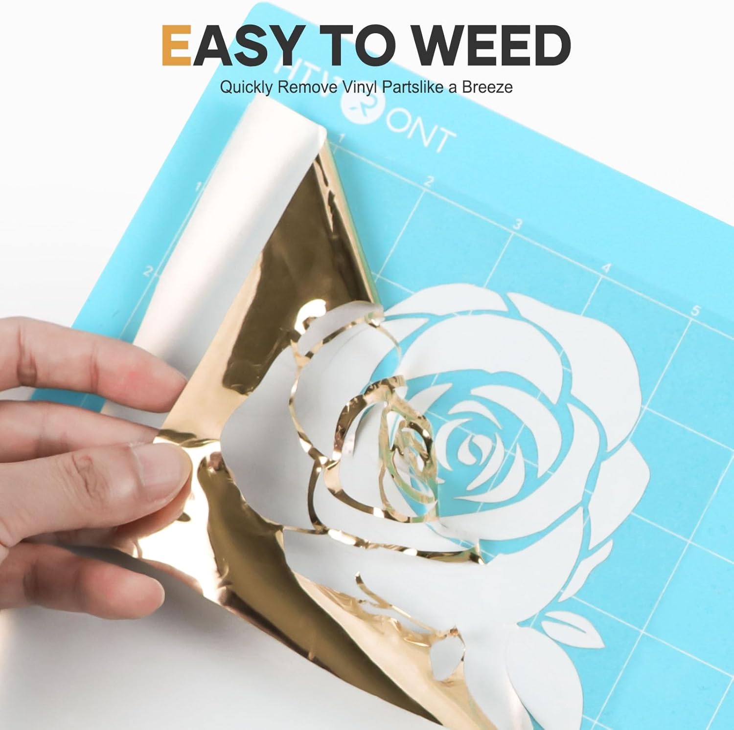 HTVRONT Gold Chrome Heat Transfer Vinyl - 12" X5ft Mirror Metallic Gold Iron on Vinyl, Metallic Foil HTV Vinyl Roll for T-Shirts, Chrome HTV Easy to Cut & Weed