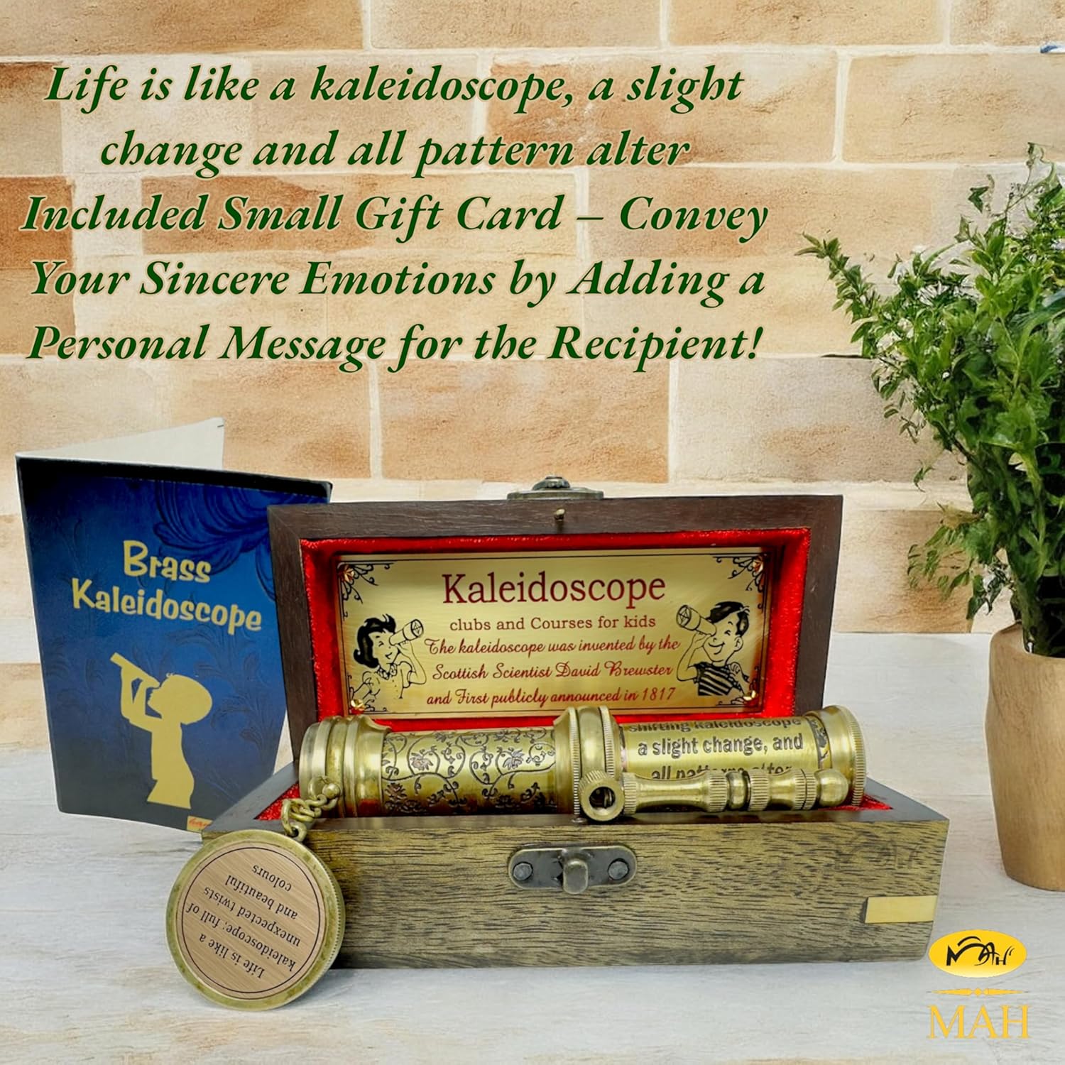 Handcrafted Brass Kaleidoscope – Vintage Nautical Collectible Gift for Kids, Teens & Adults – Sentimental Keepsake with Greeting Card – Educational Toy & Home Décor Accent – Timeless Pattern Design