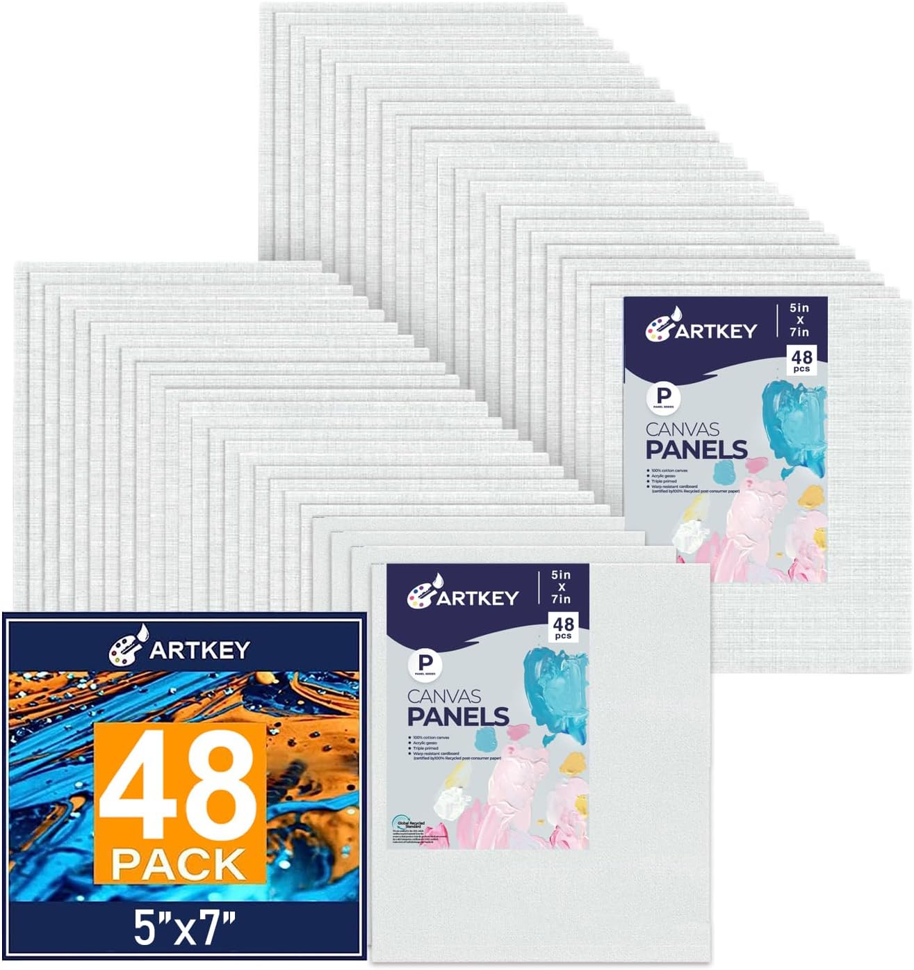 Canvas Panels 5x7 Inch 48-Pack, 10 oz Primed 100% Cotton White Blank Small Canvases for Painting, Flat Canvas Board for Oil Acrylics Watercolor & Tempera Paints