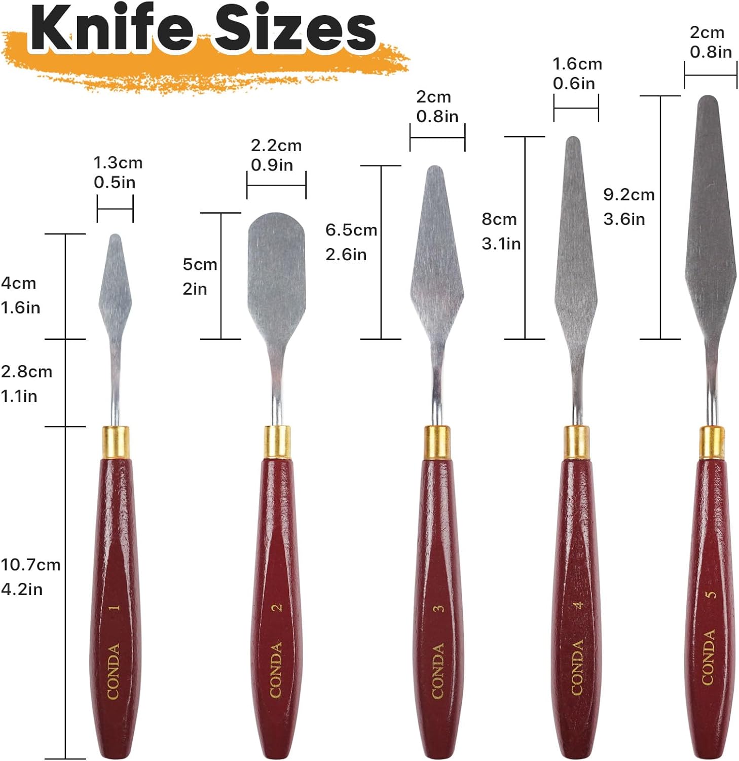 CONDA 5 Pcs Palette Knife Painting with 3 Plastic Scrapers, Stainless Steel Spatula Palette Knife Oil Paint Metal Knives Wood Handle