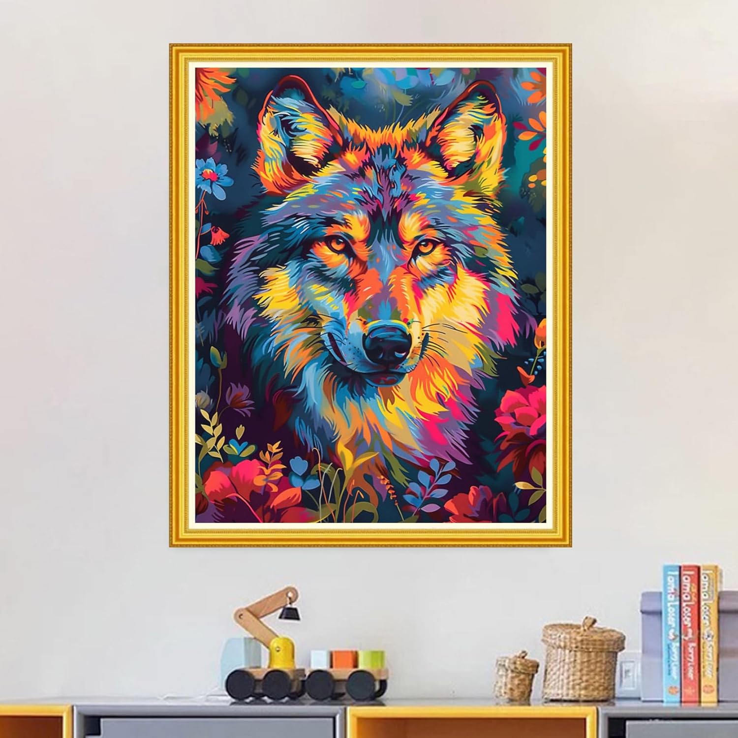 Magxvouy Cross Stitch Kits Stamped Full Range of Embroidery Kits,Cross Stitch Patterns Needlework Kits for Beginners 11CT Printed Kits&Colorful Wolf 16x20 inch