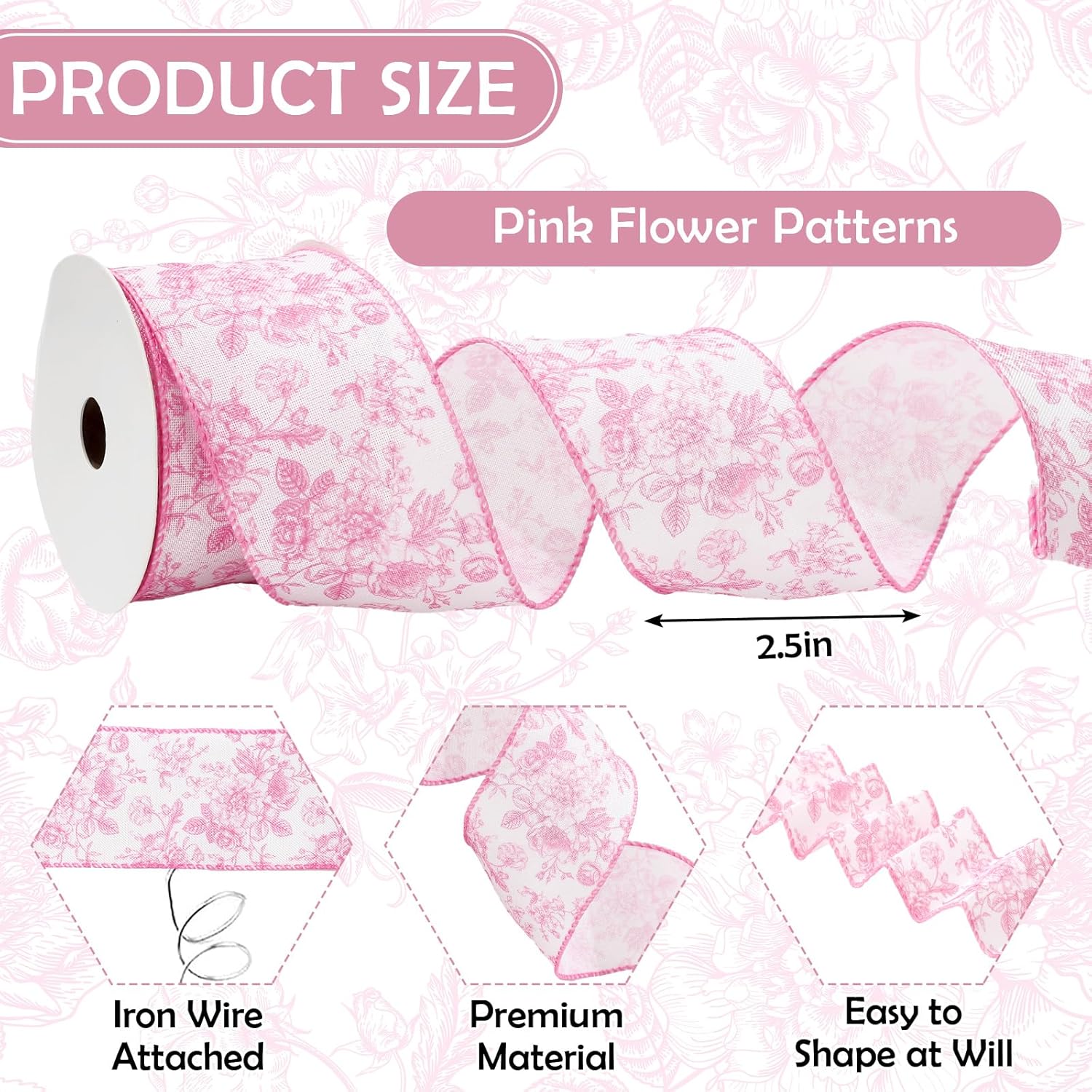 - FLORAL DESIGN: Our wired edge ribbon is designed with various chinoiserie flowers and colored in pink, elegant and delicate, will nicely increase fun atmosphere.