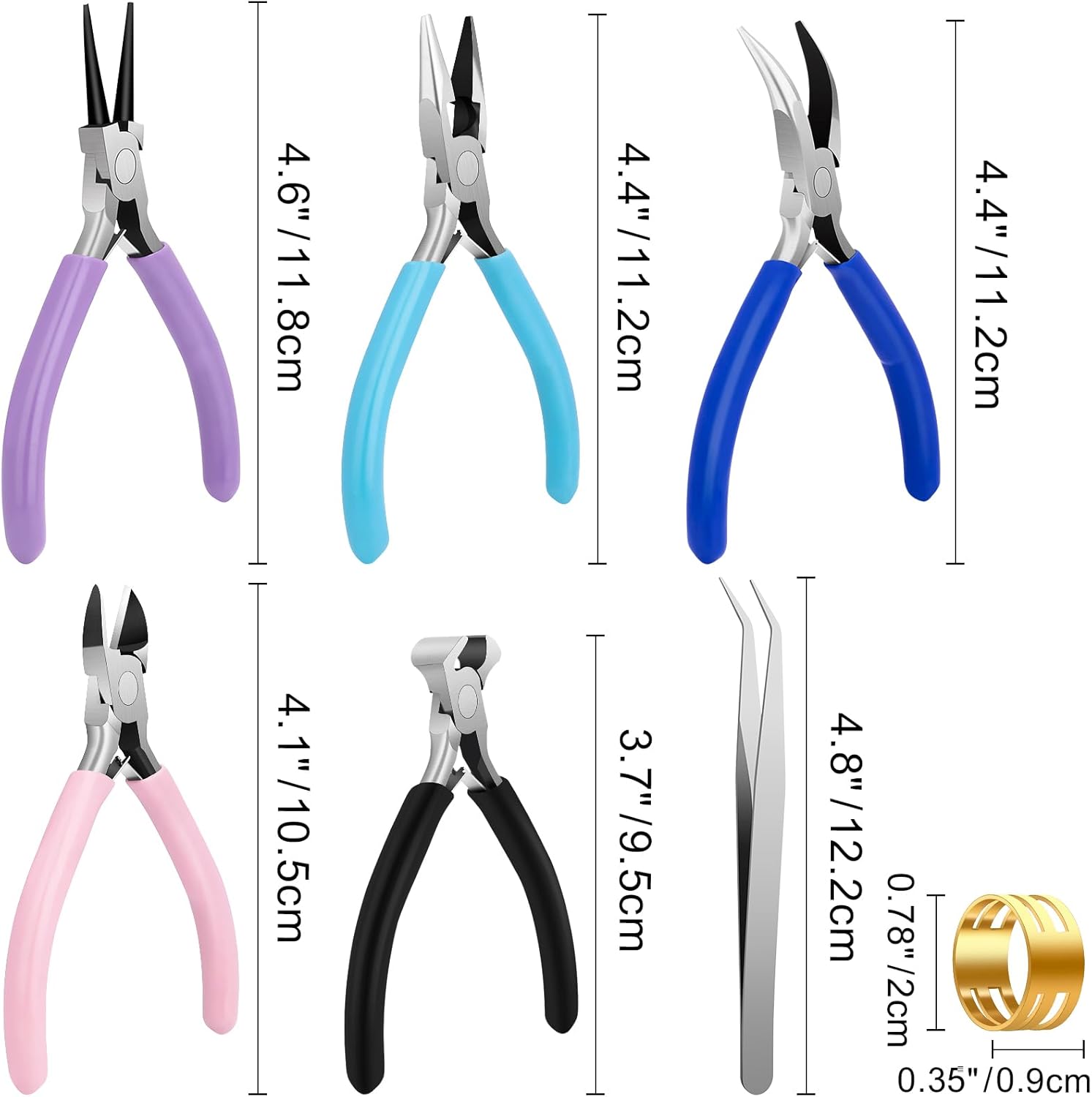 - Complete Jewelry Making Kit: This set includes 1 Needle Nose Pliers, 1 Round Nose Pliers, 1 Wire Cutters, 1 Bent Nose Pliers, 1 Zipper Pliers, a tweezer, and a jump ring, perfectly suited for all your jewelry crafting needs, from wire wrapping to jewelry repair