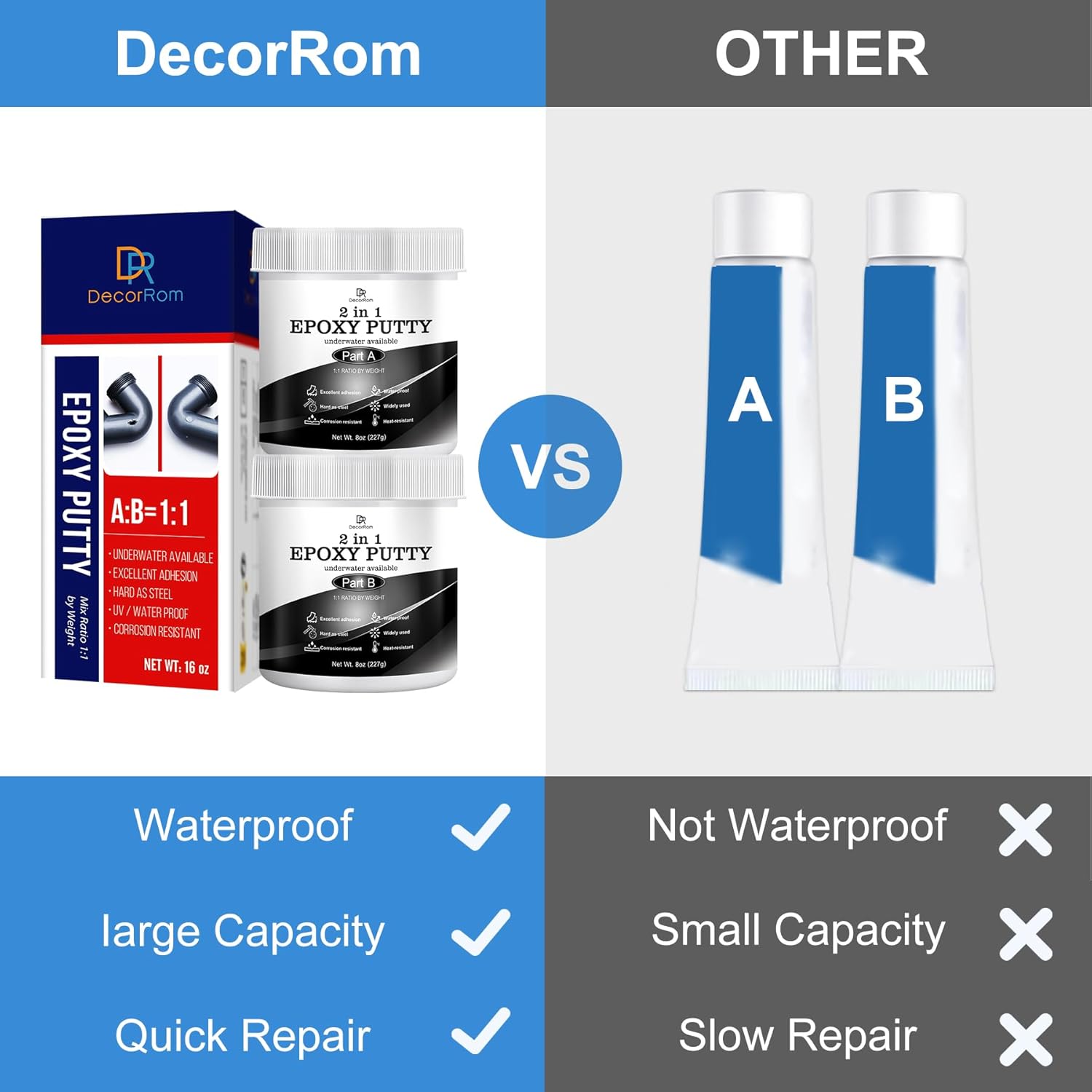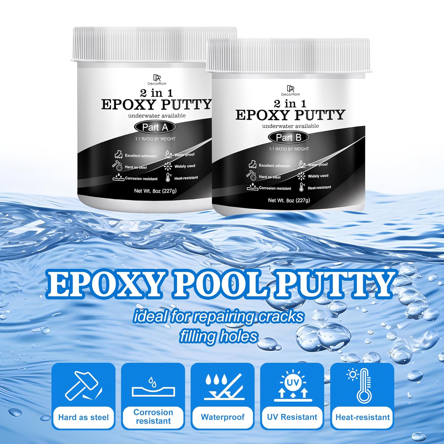 - VERSATILE 2 PART EPOXY PUTTY - This epoxy putty is a versatile solution for a wide range of underwater and above repair needs, ideal for fixing leaks, filling holes, cracks and uneven surfaces, bonding different materials, sculpting, modeling. As a high-strength epoxy adhesive, AB pool putty can substitute traditional complex welding methods for project repair.