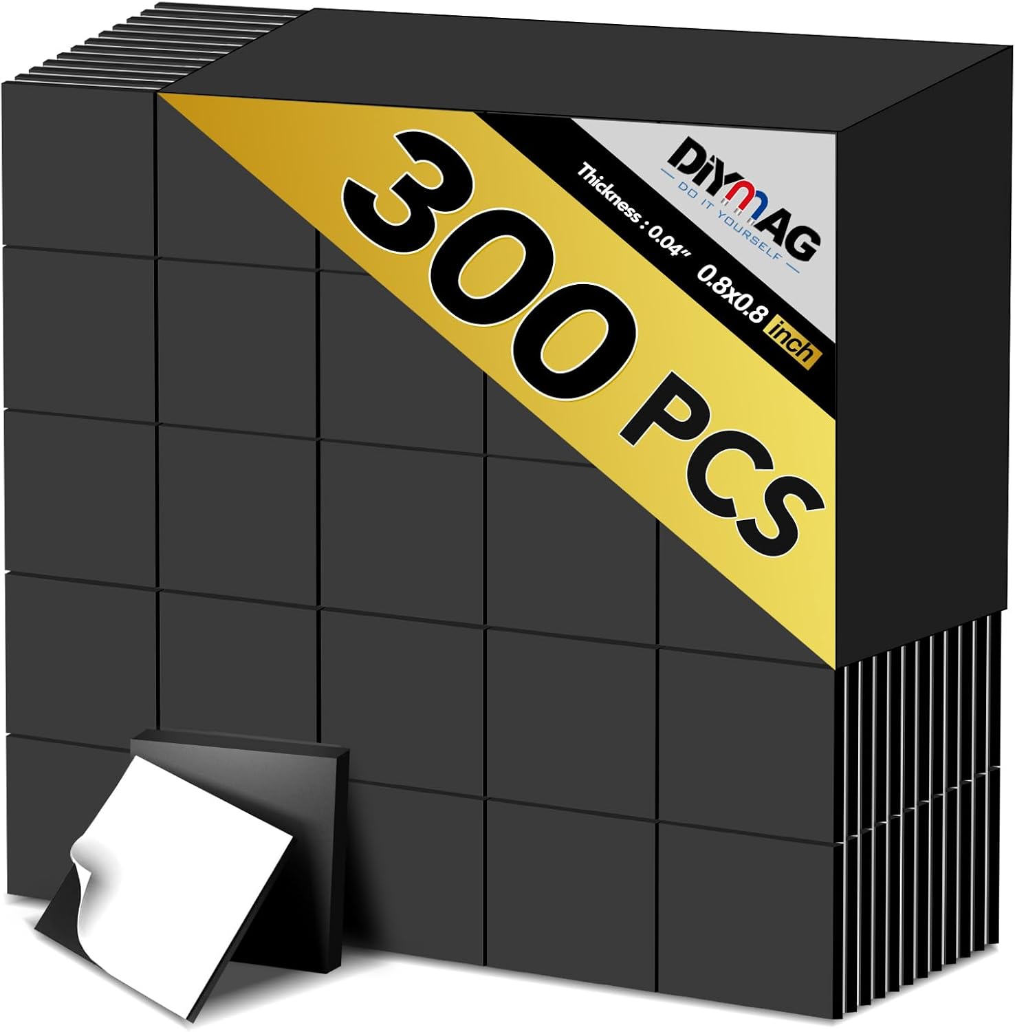- 【Magnetic Dots Set】300 Pcs magnetic dots with adhesive backing.Each square magnet measures 0.8 x 0.04 inches (20x1 mm), one side is sticky and the other side is a flexible magnet. You can use it on non-metallic materials, allowing you to stick anything you want