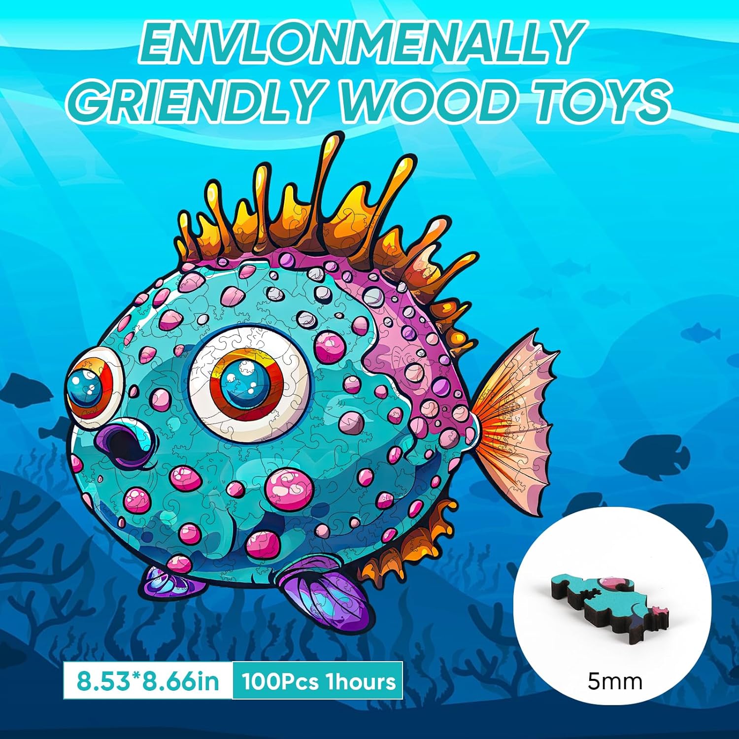 Wooden Puzzles for Kids,100 Pieces Ocean Puzzle,Unique Fish Shaped Wooden Puzzle, Preschool Puzzle Toys, Give Your Kids/Grandchildren, Suitable for Family Games