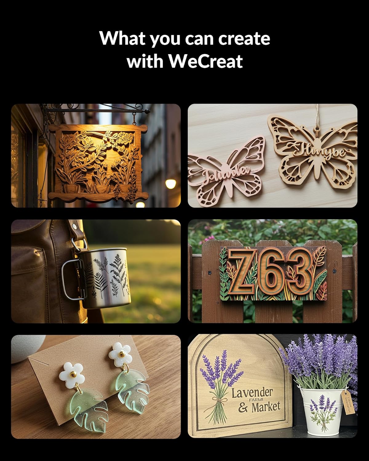 - User-Friendly Software: Our upgraded "WeCreat MakeIt" software, it not only has 3D Preview and Smart Fill special functions, but also offers a vast library of over 500 fonts and 1000+ images and ready-made setting for multiple materials such as wood, acrylic, metal, leather and more which help your creativity into reality. The WeCreat Vision is also compatible with 'Lightburn' for pro use.