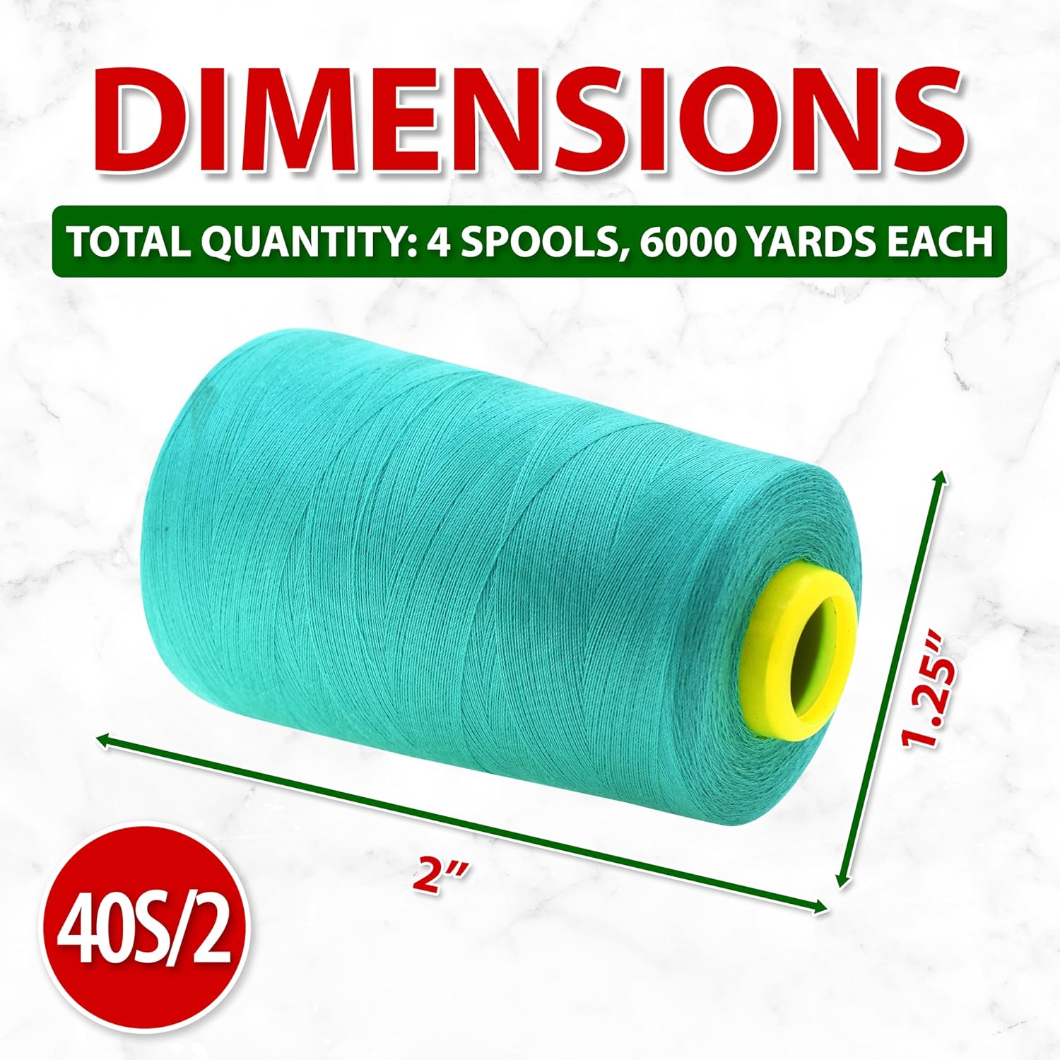 - Bulk Aqua Polyester Serger Spools Thread Sewing Supplies Kit: Each 4.25 x 3 x 3 in cone of thread is 6000 yards long. The 40wt all-purpose sewing thread serve as heavy duty cone serger thread for sewing machine for both residential and commercial use.