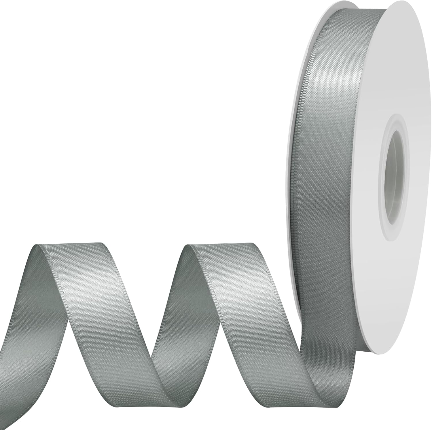 Silver Satin Ribbon 3/4" X 50 Yards Solid Color Double Faced Ribbons Perfect for Crafts Wedding Decor Bow Making Arts Sewing and More