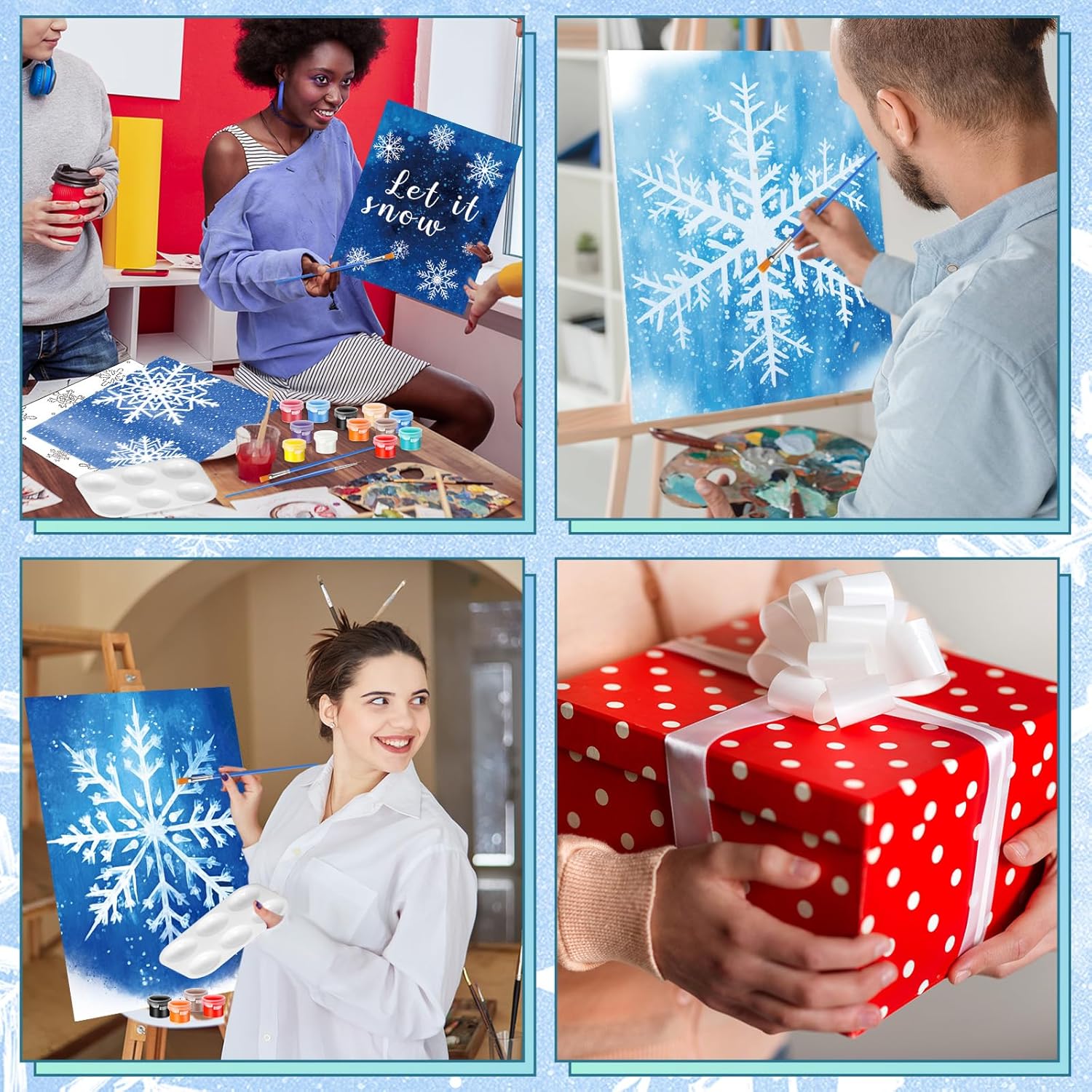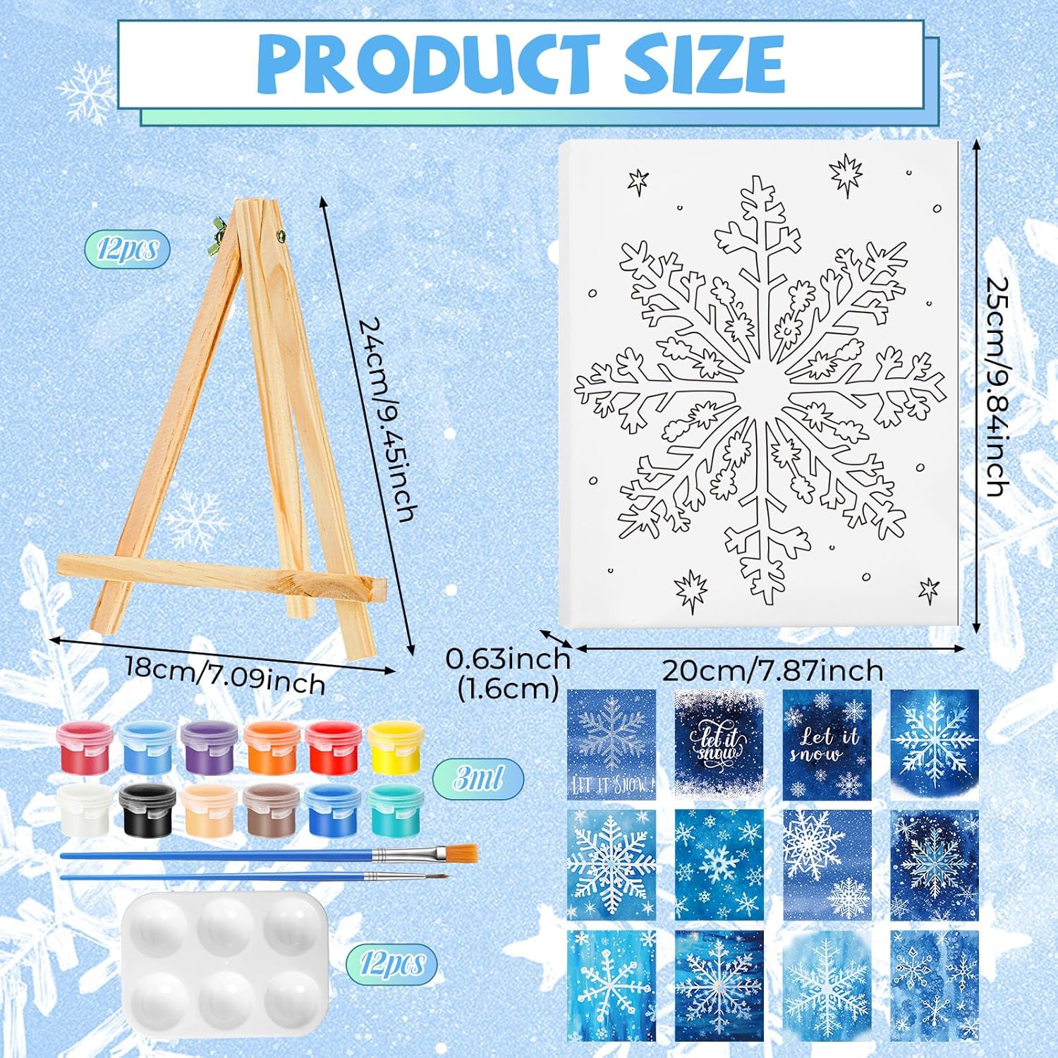 - Different Styles: our drawn canvas offer a variety of 12 different winter snowflake themed styles to choose from; This design can make sure there's a style that fits your taste and preference; Whether you're a beginner, a paint and sip going enthusiast, or an expert painter, our painting canvases with pictures to paint will help you craft stunning artworks effortlessly; Get ready to dive into the world of colors and creativity with our pre drawn canvas paint kit