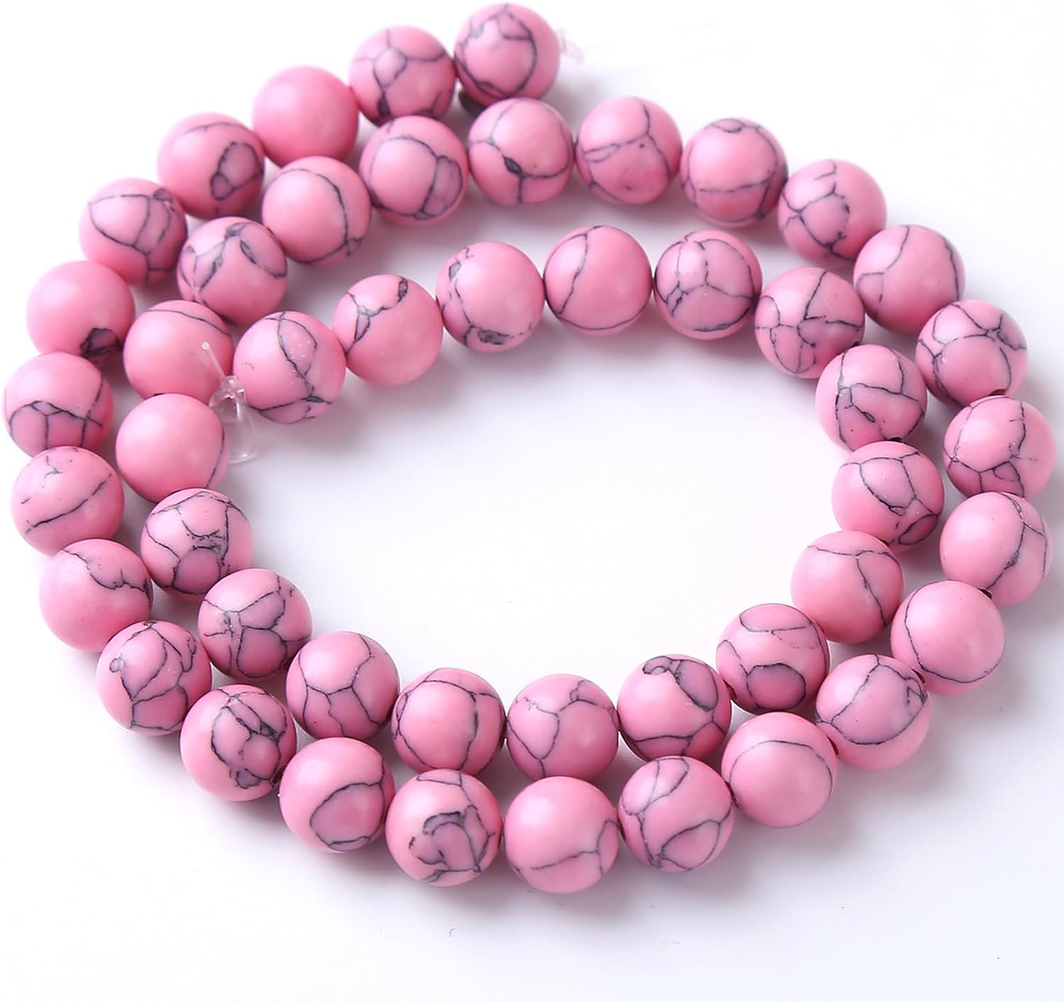 36pcs 10mm Pink Turquoise Beads Natural Stone Round Loose Spacer Beads for Jewelry Making DIY Bracelet Necklace 1 Strand 15inch