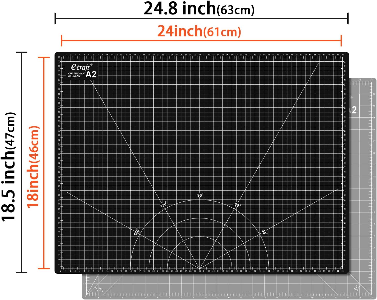 - 【Rotary Mat Size】Accurate cutting double sided, both inches and metric gridlines & angles.Mat size:24.8 x 18.5inches(63 x 47cm), Grid size: 24 x 18inches(61 x 46cm),with easy-to-read measuring grids and 30, 45, and 60-degree bias lines that make angle cutting easy.