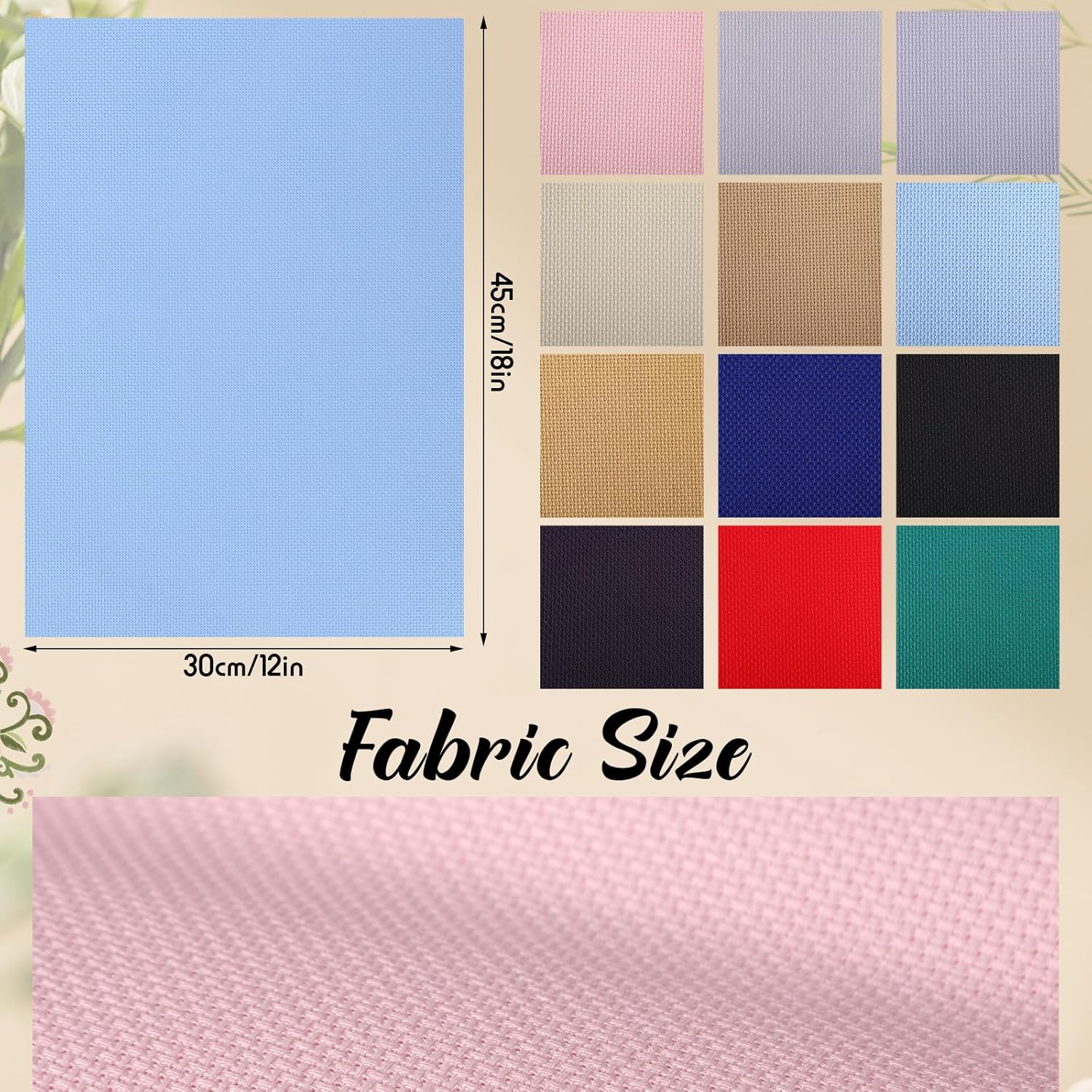 12 Pcs Aida Cloth 12 Color 14 Count Cross Stitch Fabric DIY Cross Stitch for Embroidery DIY Handmade Art Craft, 12 x 18 inch(Colorful)