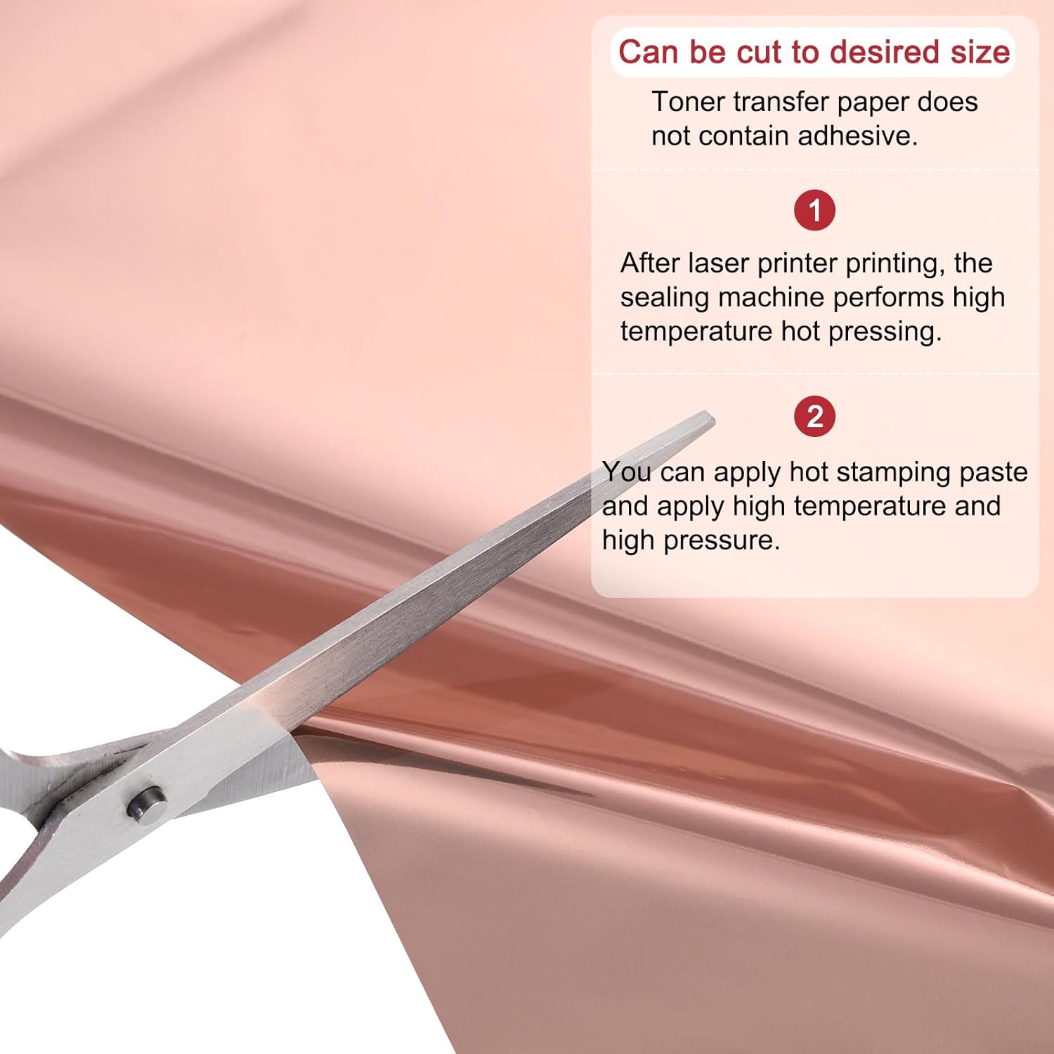 MECCANIXITY 50 Pack Toner Reactive Foil ,Deco Foil Transfer Sheets 8.5"x11" A4 Hot Foil Paper for Laser Printer Scrapbooking Heat Transfer DIY Craft,Rose Gold