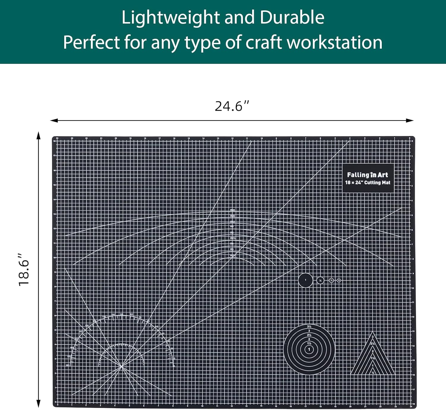 - Precise Cutting: Falling in Art double-sided cutting mat is printed with inches, metric grid lines, radius, and different angles. With easy-to-read and clear gridlines on both sides, it ensures accurate cuts for all your crafting needs
