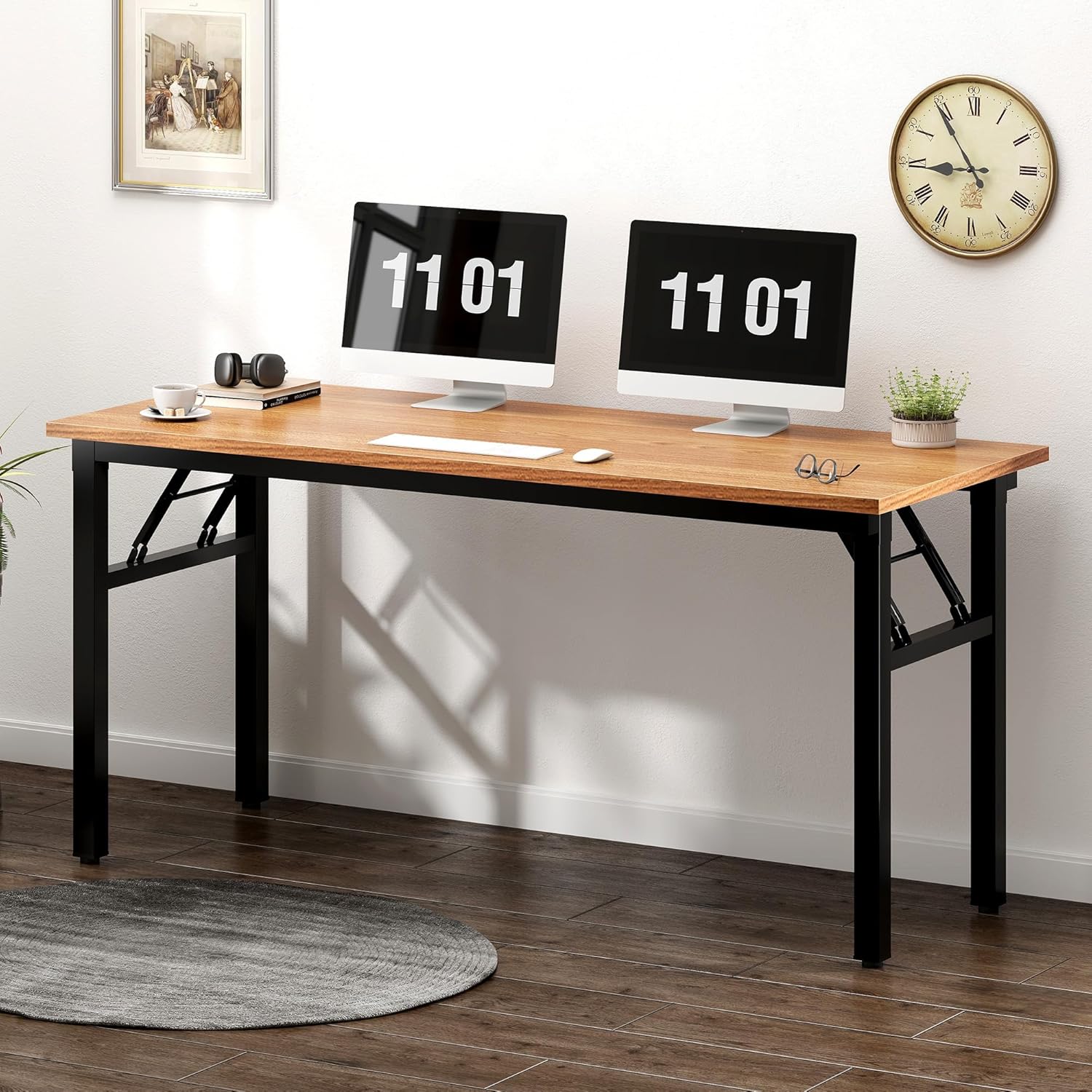 Need Folding Desk, 54 inch Large Computer Desk for Home Office, No Install Needed Study Student Writing Table Desk Workstation, Teak Black