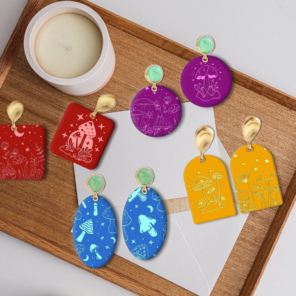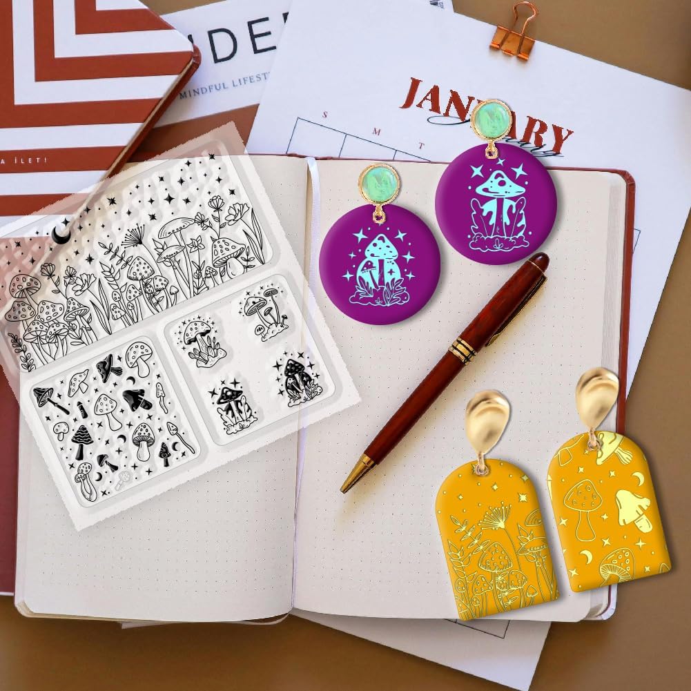 - Mushrooms Theme: The mushroom polymer clay texture sheet for clay jewellery making is very delicate and beautiful. There are also stars, moons, flowers and other patterns. Perfect for jewellery and other small objects, it can meet your various creative needs and add personality and creativity to your work.
