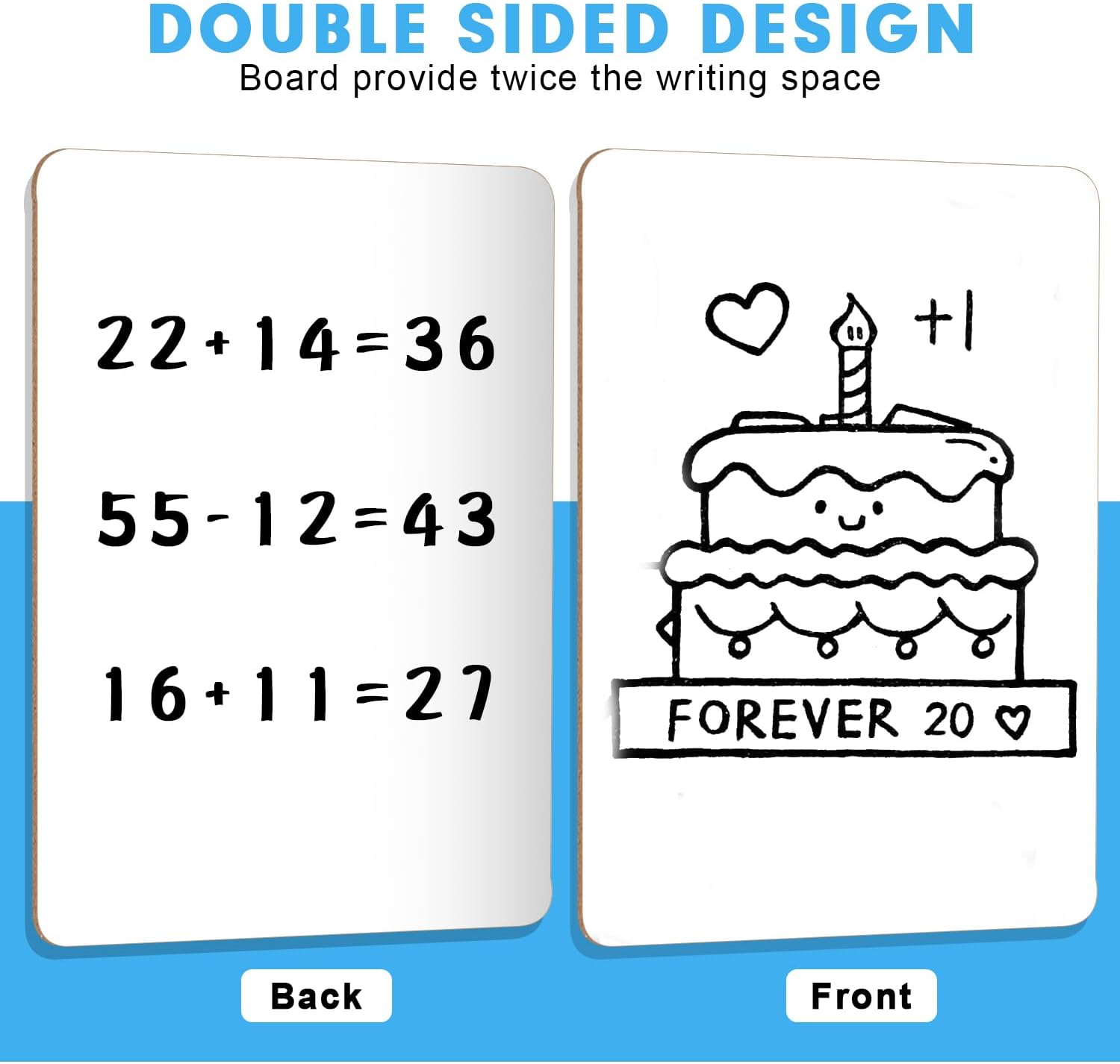 - Smooth Surfaces and Double Sides: The double-sided dry erase boards are smooth. Each board can be used on both sides, giving student a lot of space to write. It can be used as a subject in mathematics, experiments and dictation, etc