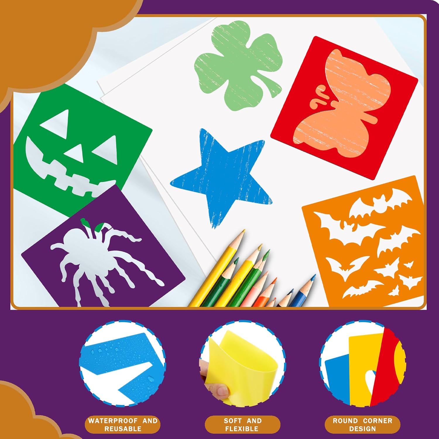 - Package Include: 24 pieces chalk stencils in different shapes and colors,enough quantities,various shapes and bright colors for you to use and can meet your various process needs
