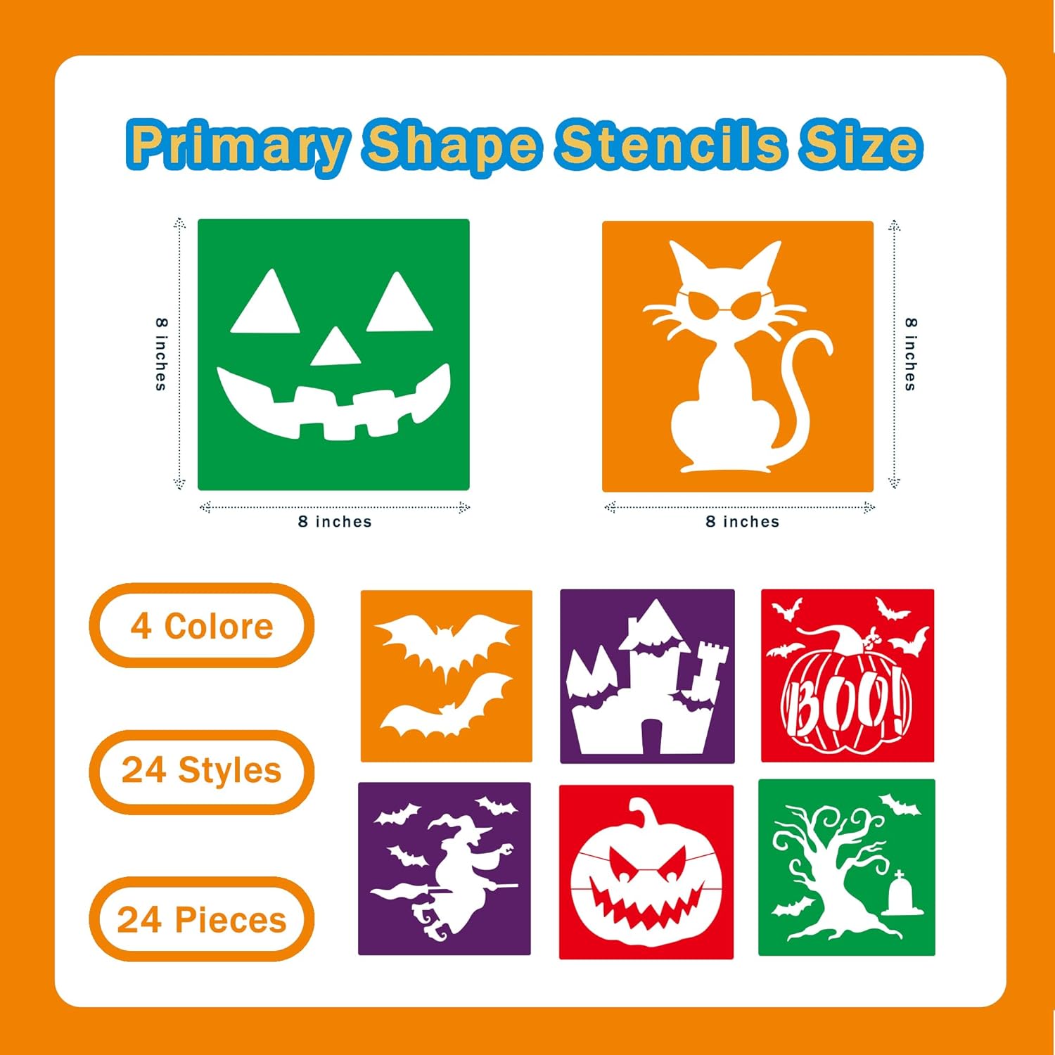 24 Pieces for Kids,Large Drawing Chalk,8 Inches Washable Shape Template Kit for Kids Crafts,Painting Drawing,School Projects (Halloween, 8 inch)