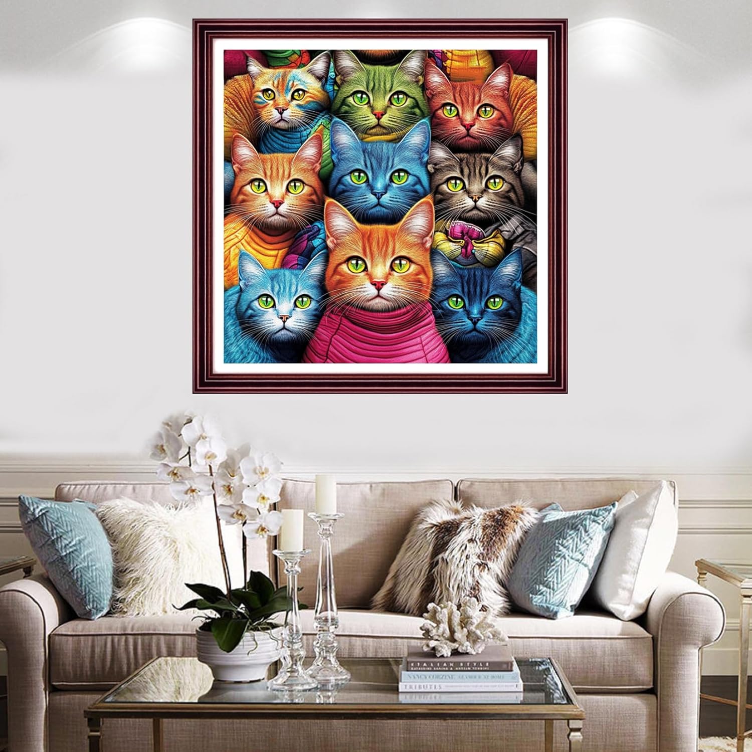 Redxing Stamped Cross Stitch Kits Full Range of Embroidery Starter Kits- Needlepoint Counted Cross Stitch Kits for Beginner Adults 11CT Printed Embroidery Kit-Abstract Cat 18x18 inch