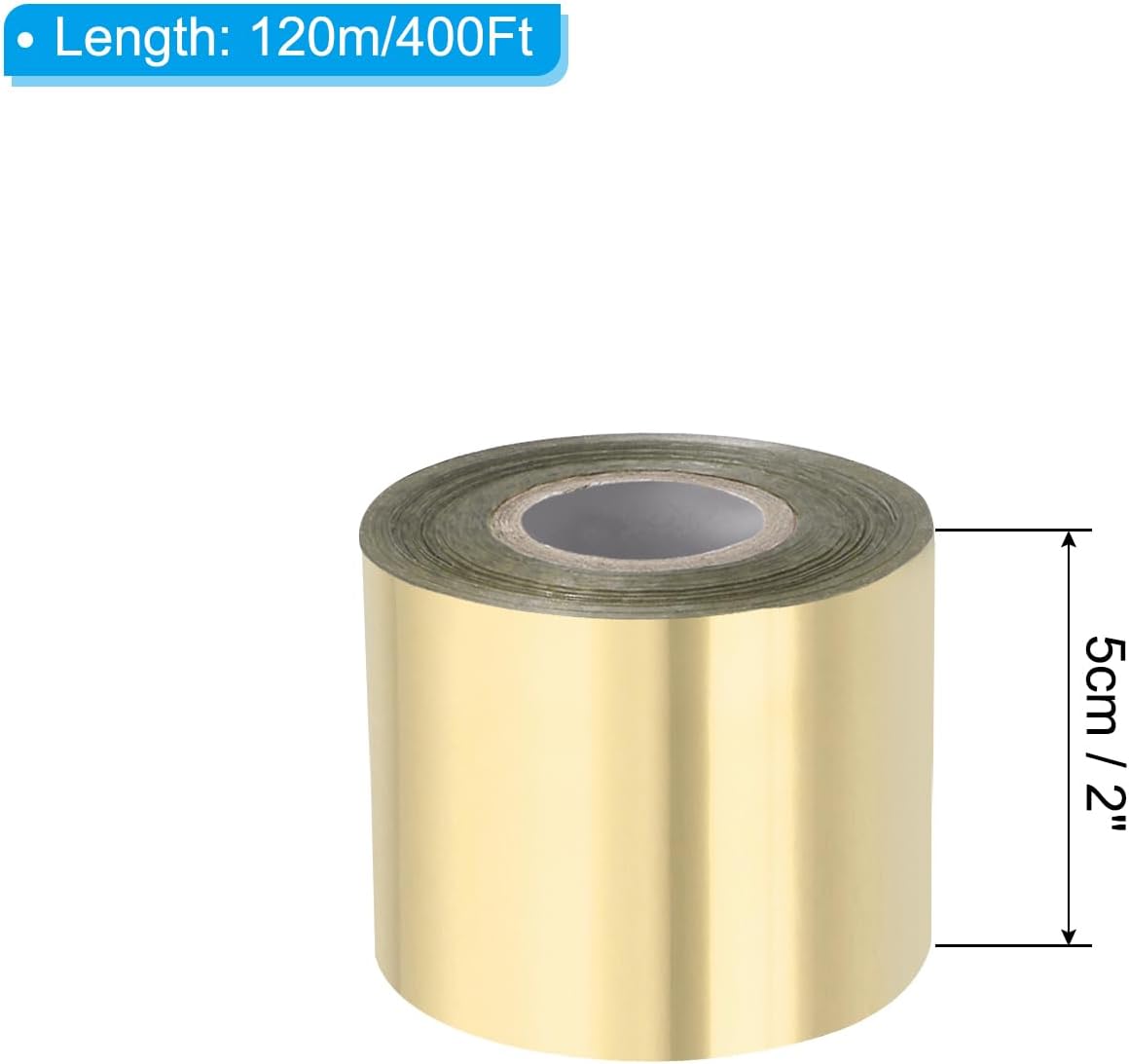 - Specification: Color: Light Gold; Hot Stamping Foil Paper Width: 5 cm/2 Inch; Hot Stamping Foil Paper Length: 120m/400Ft; Material: PET Plastic; Packing list: 1 Roll x Hot stamping foil paper