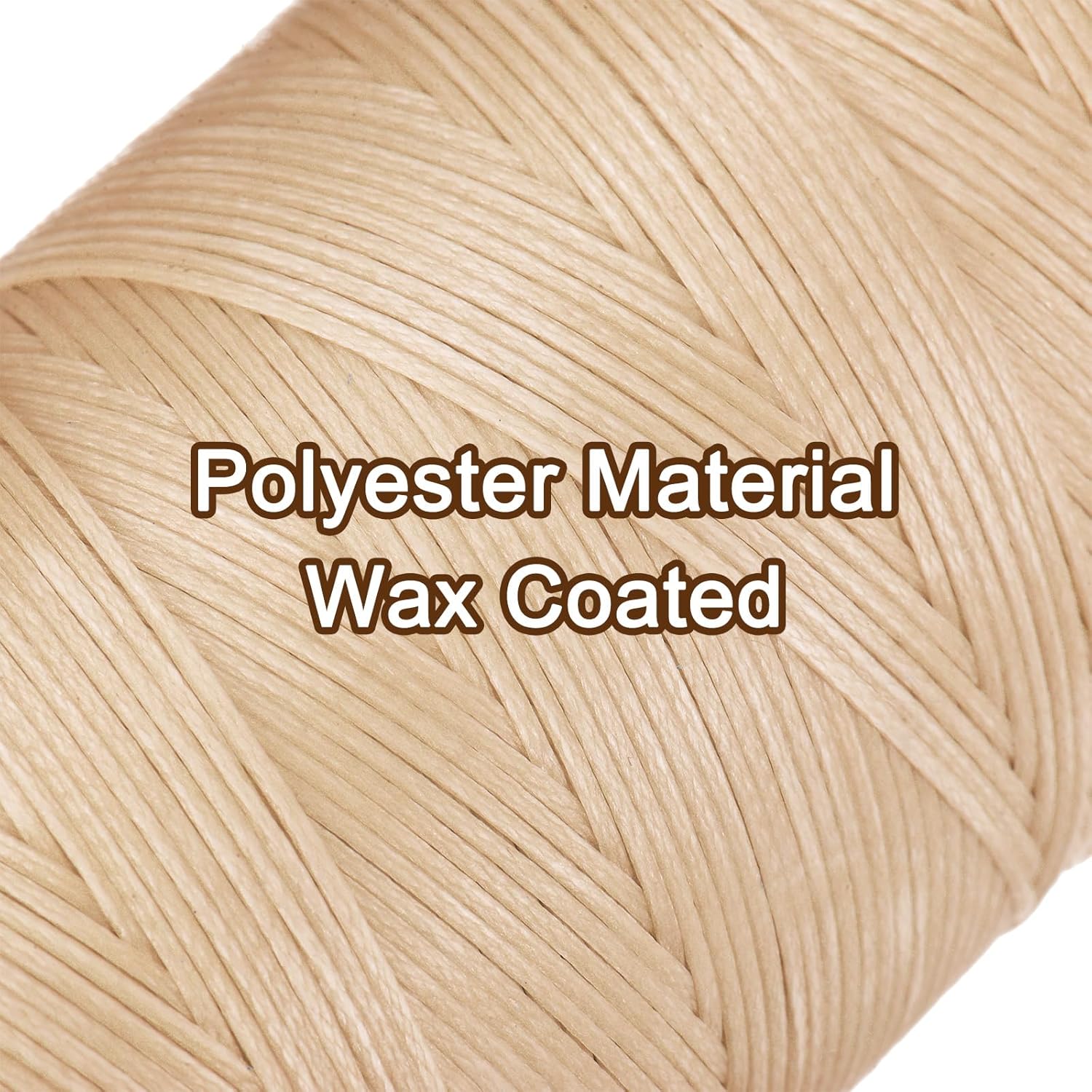 uxcell 150D 0.8mm Flat Waxed Thread 284 Yards Polyester Leather Sewing Waxed String Hand Stitching Waxed Cord for Leather Stitching Sewing Bookbinding DIY Craft Light Beige