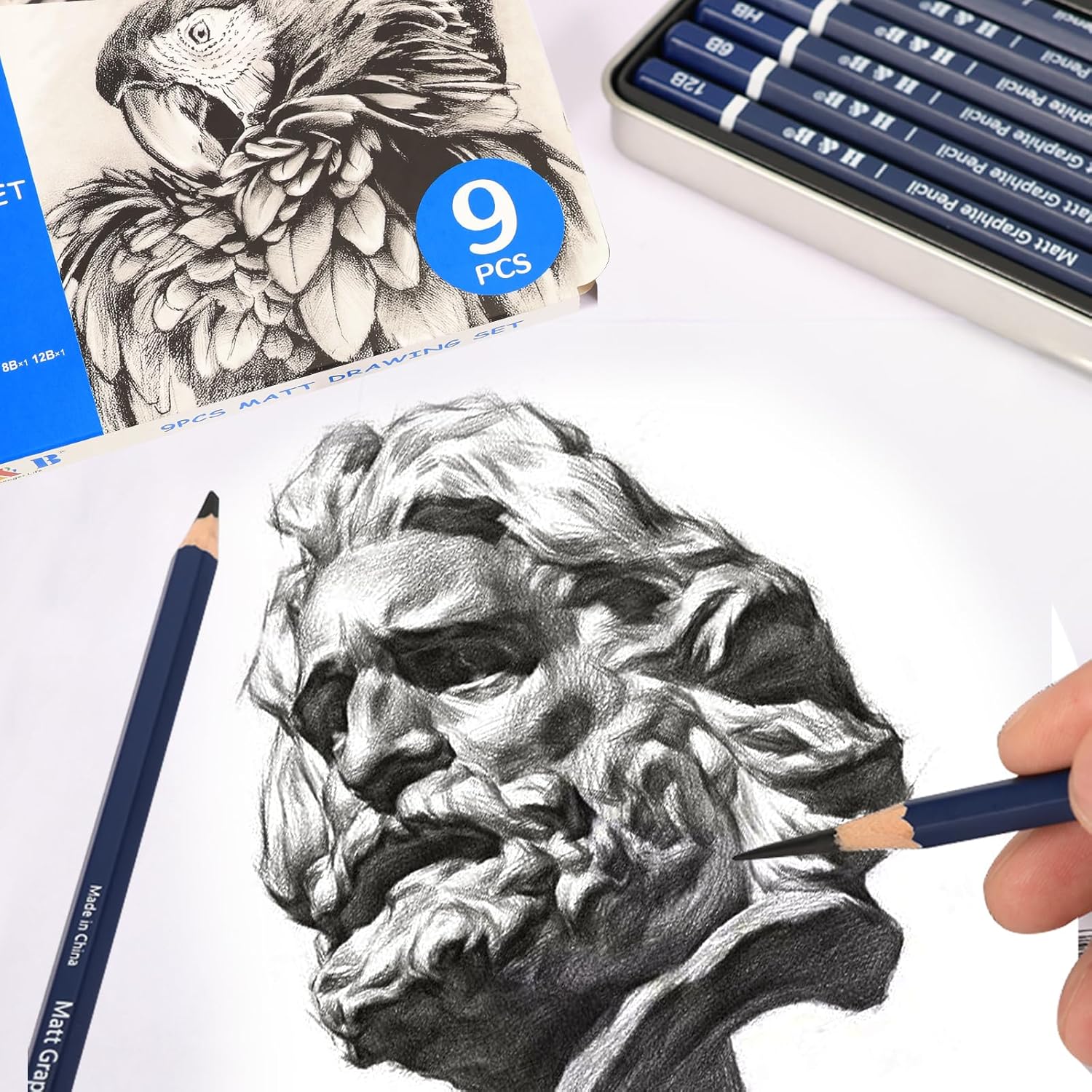 H & B Profession Sketch Pencils 9-Piece, Matte Sketch pencils, Sketch Pencil Set for Drawing, Shading, and Sketching for Beginners, Artists and professional artists