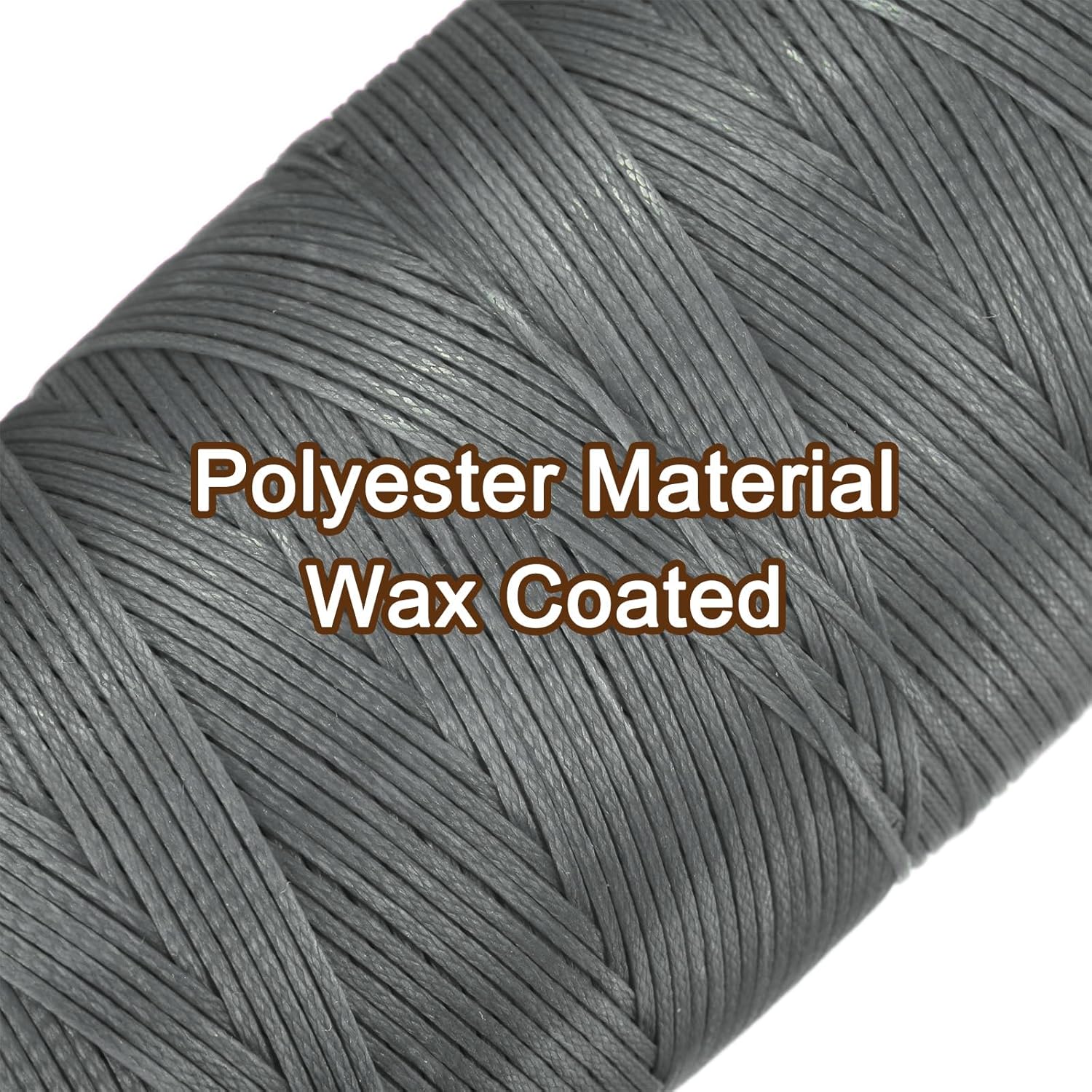 - Waxed Thread: Thread Diameter: 150D / 0.8mm; Total Length: Approx 284 Yards / 260m (Each Roll); Material: Polyester; Color: Silver Gray; Package Contents: 1 Roll Flat Waxed Thread.