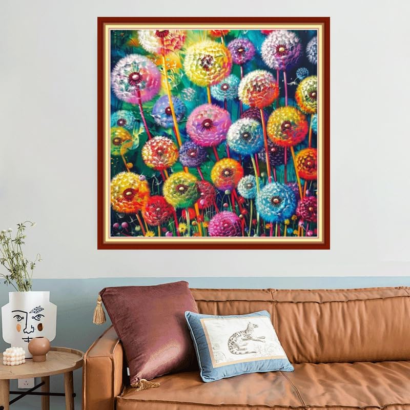 Joyhoor Stamped Cross Stitch Kits for Beginners, Needlepoint Kits for Adults, 11CT Counted Embroidery Kits-Colorful Dandelion 18x18 inchs
