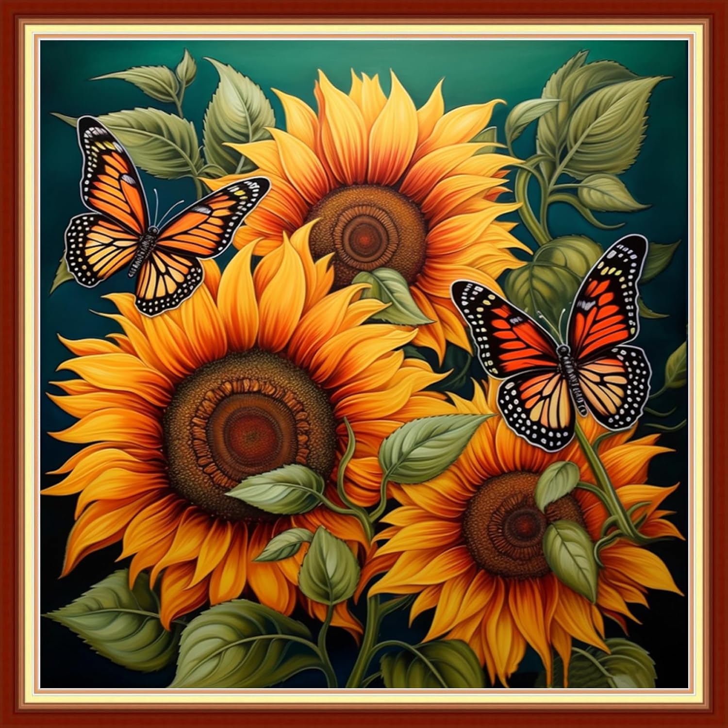 Joyhoor Stamped Cross Stitch Kits for Beginners, Needlepoint Kits for Adults, 11CT Counted Embroidery Kits-Magic Sunflower 18x18 inchs