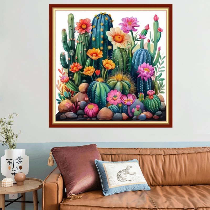 Joyhoor Stamped Cross Stitch Kits for Beginners, Needlepoint Kits for Adults, 11CT Counted Embroidery Kits-Succulent Plants 18x18 inchs