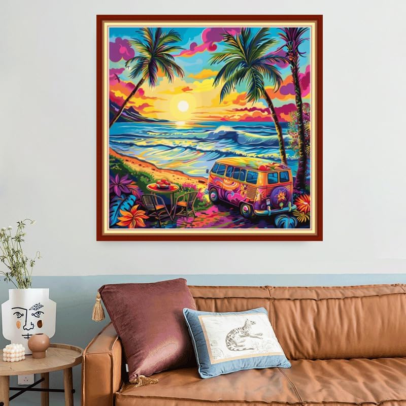 Joyhoor Stamped Cross Stitch Kits for Beginners, Needlepoint Kits for Adults, 11CT Counted Embroidery Kits-Drinking Tea by Seaside 18x18 inchs