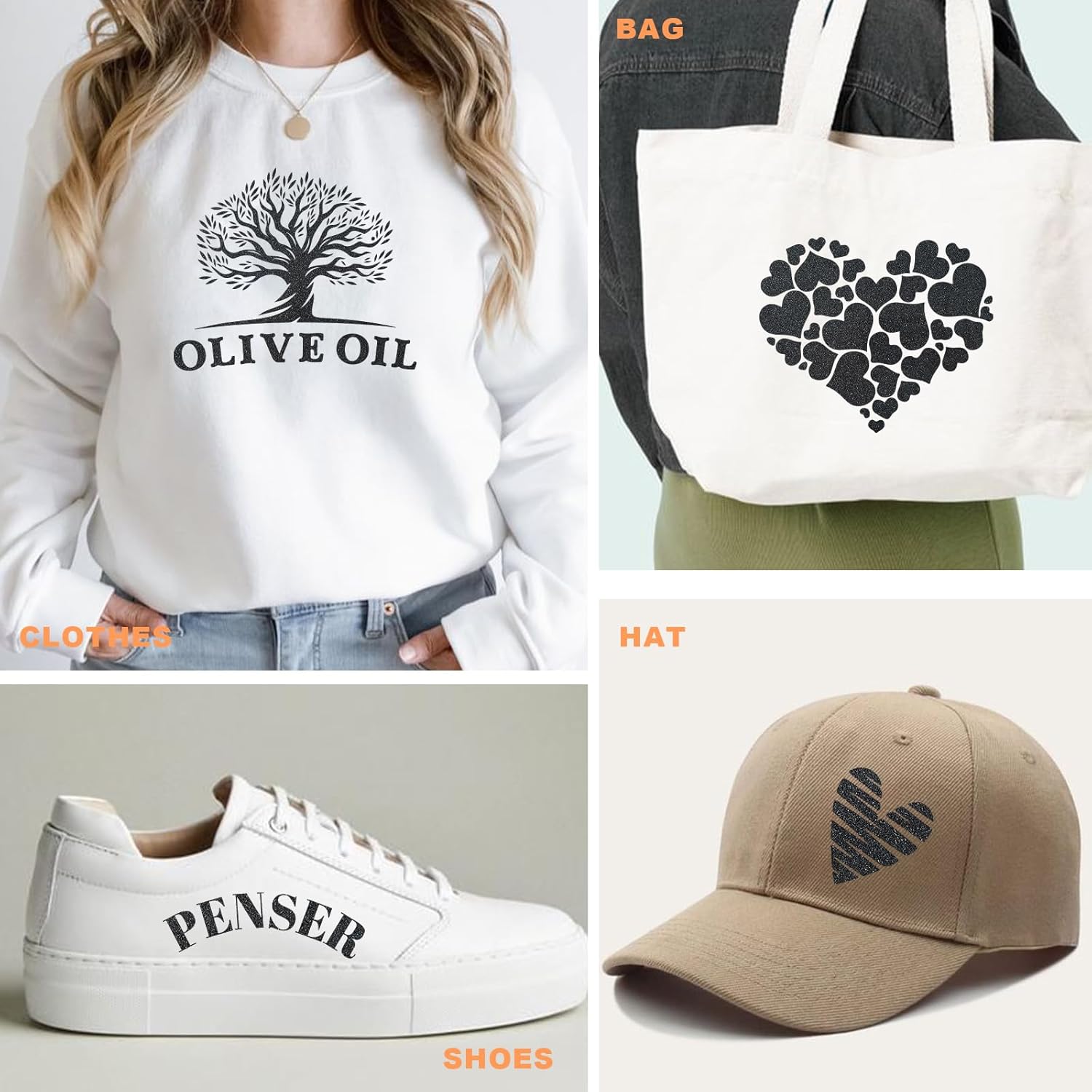 - 【Wide Application 】 Glitter HTV This glitter htv vinyl can be used for a wide range of fabrics such as cotton, polyester to customize T-shirts, hoodies, bags, hats, shoes, baseball caps, pillows and more.